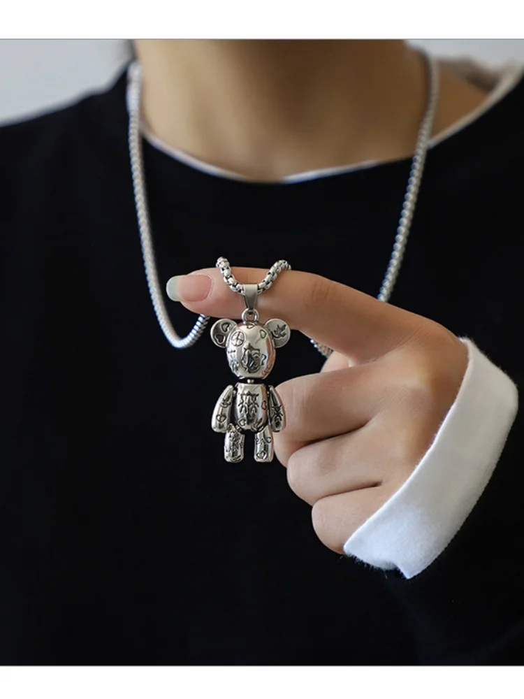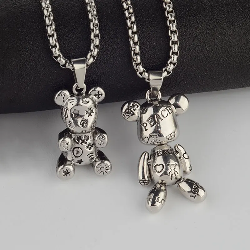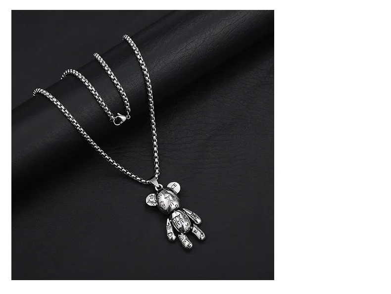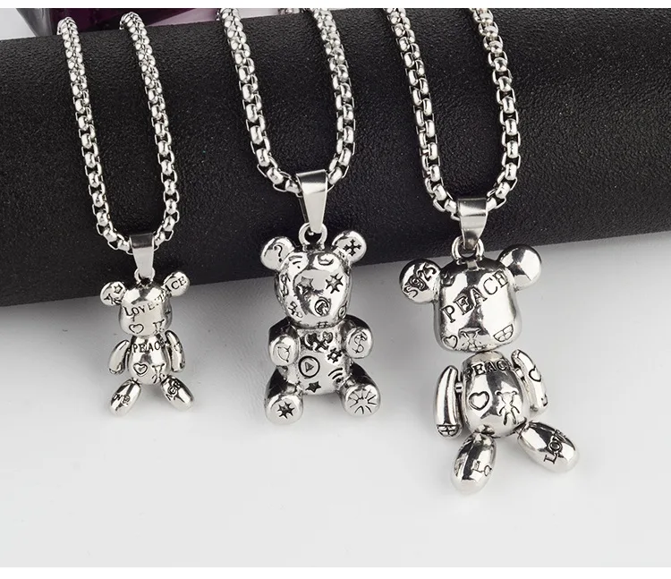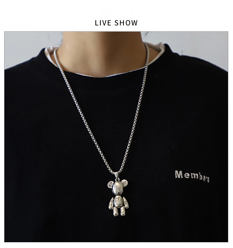 Fashion Hip Hop Bear Pendant Titanium Steel Necklace Punk Men and Women Ins Y2k Couple Sweater Chain Female Jewelry Gift