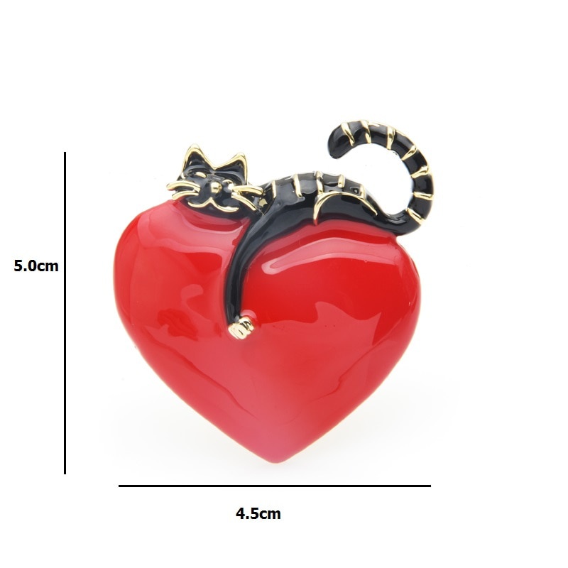 Original Enamel Heart Lazy Cat Brooch Pins For Lovers Gift Wedding Jewelry Brooch Christmas New Year Gift