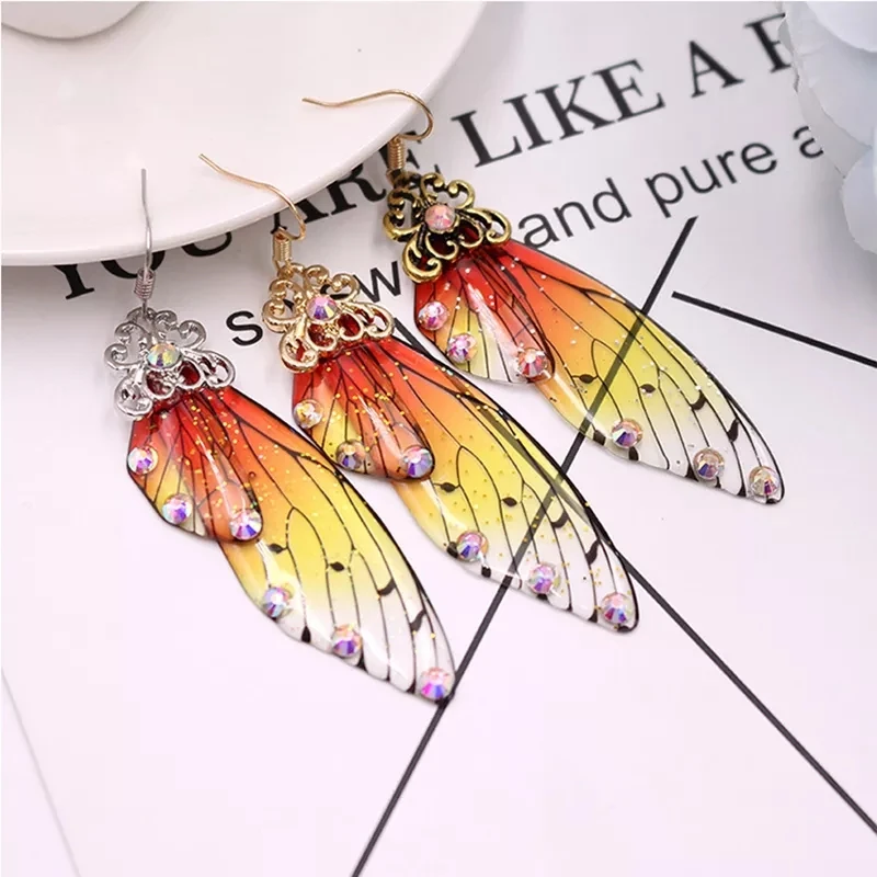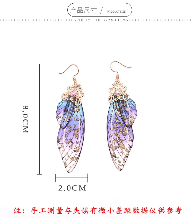 Fairy Simulation Butterfly Wing Earrings Demon slayer Kimetsu no Yaiba Kochou Shinobu Earrings Ear Clips Women Girl Jewelry