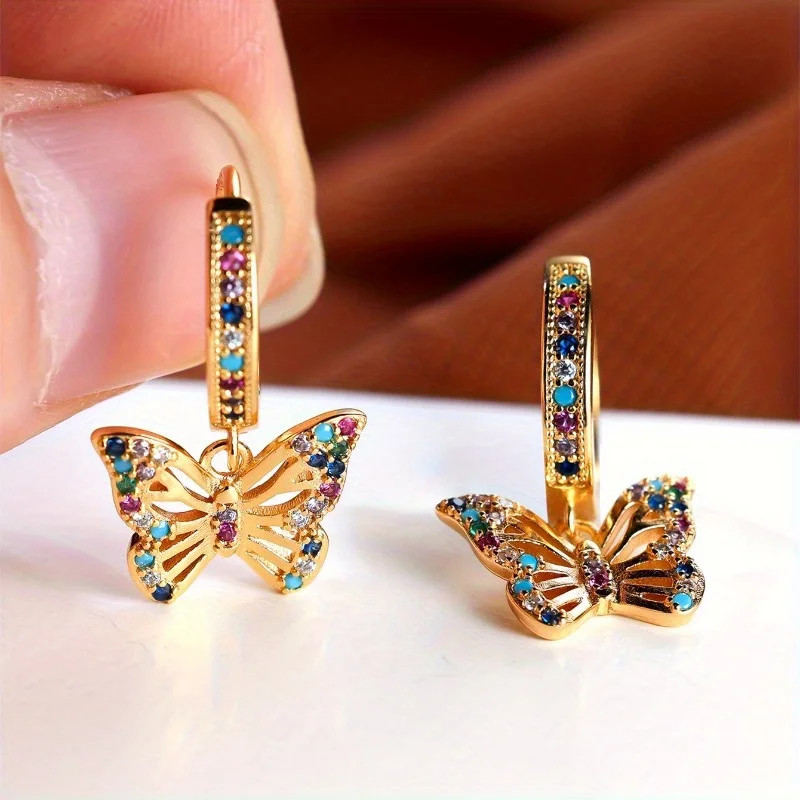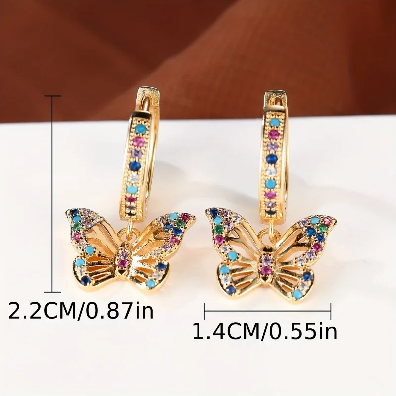 Luxury Female Rainbow Zircon Butterfly Hoop Earrings Fashion Gold Color Wedding Jewelry For Women