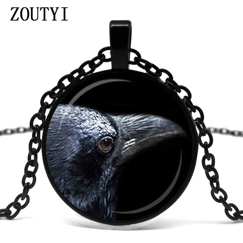 2018/RAVEN PENDANT Black Crow Glass Pendant Necklace Gothic Ornament Bird Necklace Steampunk Gift Black Raven Necklace.