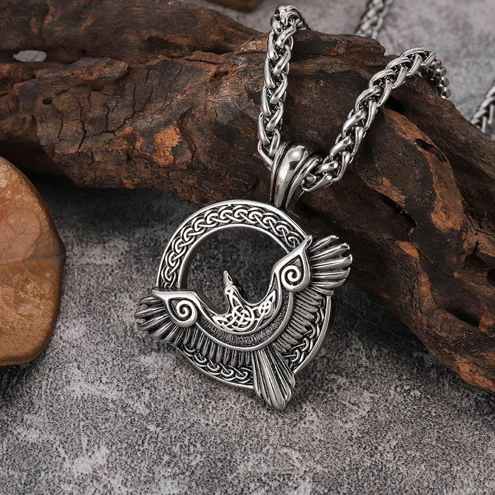 Nordic Viking Stainless Steel Engraved Raven Pendant Wholesale New European & American Style Titanium Steel Men's Necklace Acces