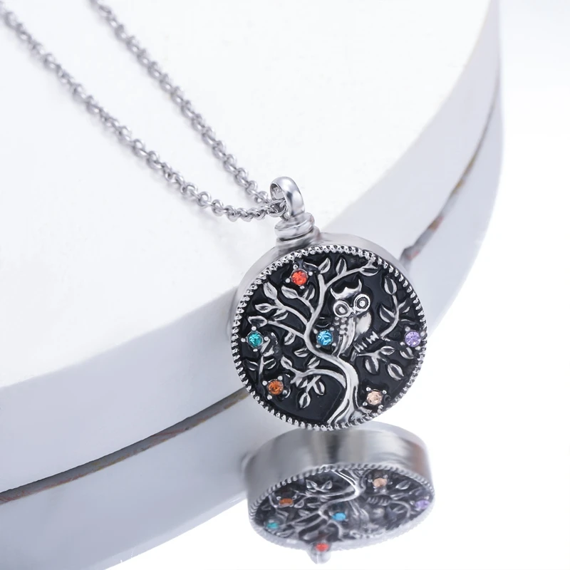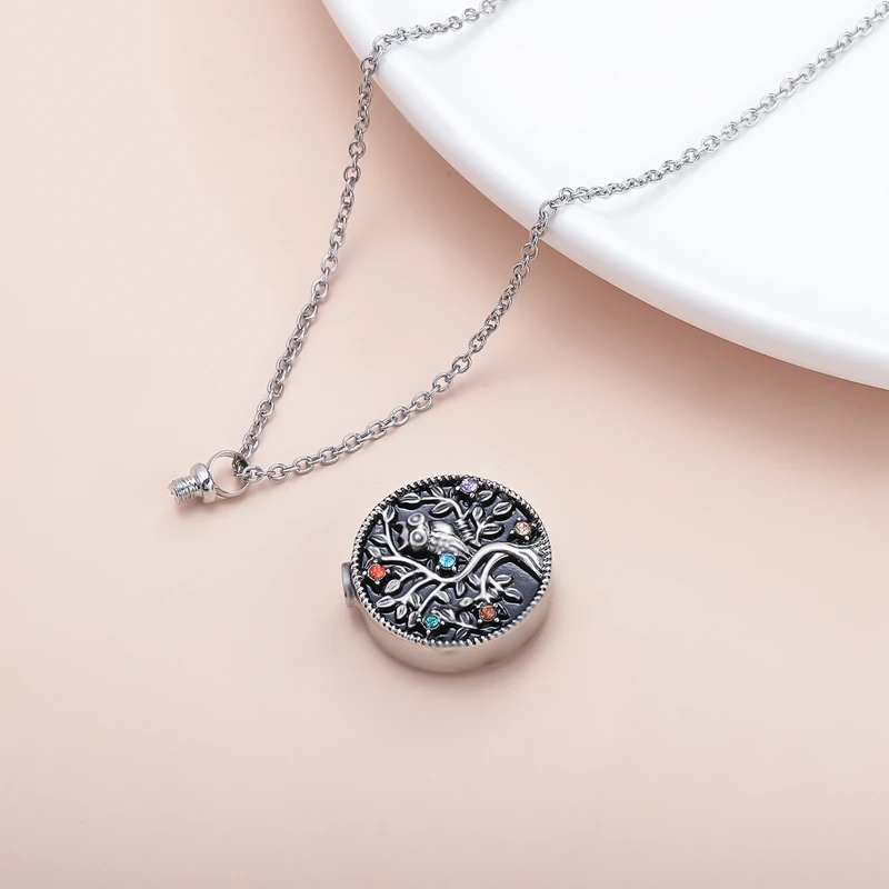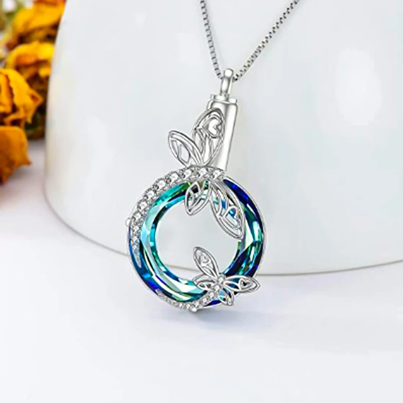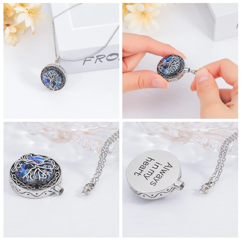 11 Styles Crystal Silver Color Heart Tree Dolphin Butterfly Dragonfly Pendant Necklace Metal Urn Ashes Holder Memorial Gift