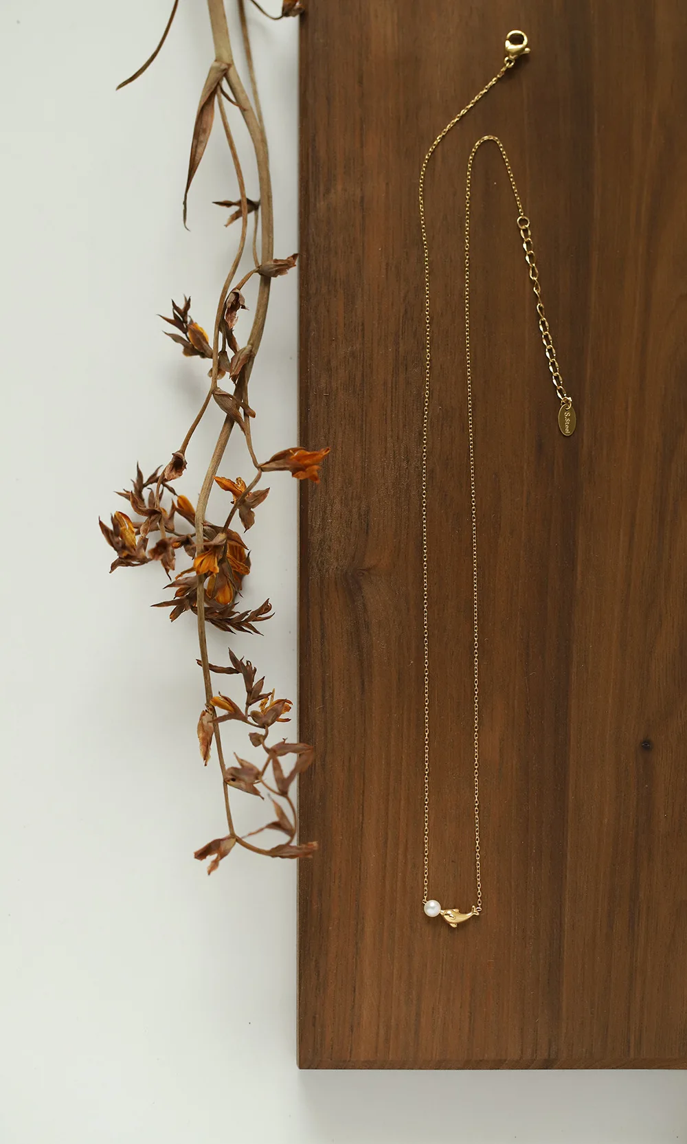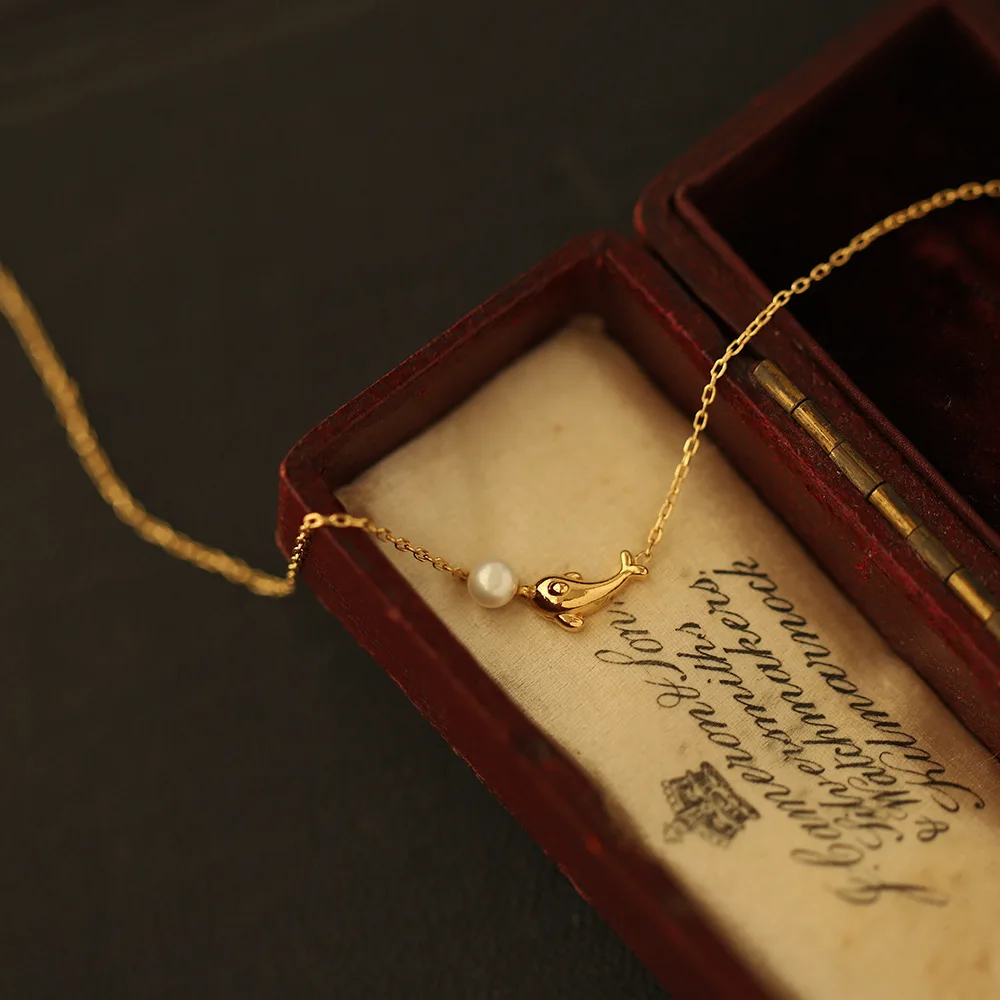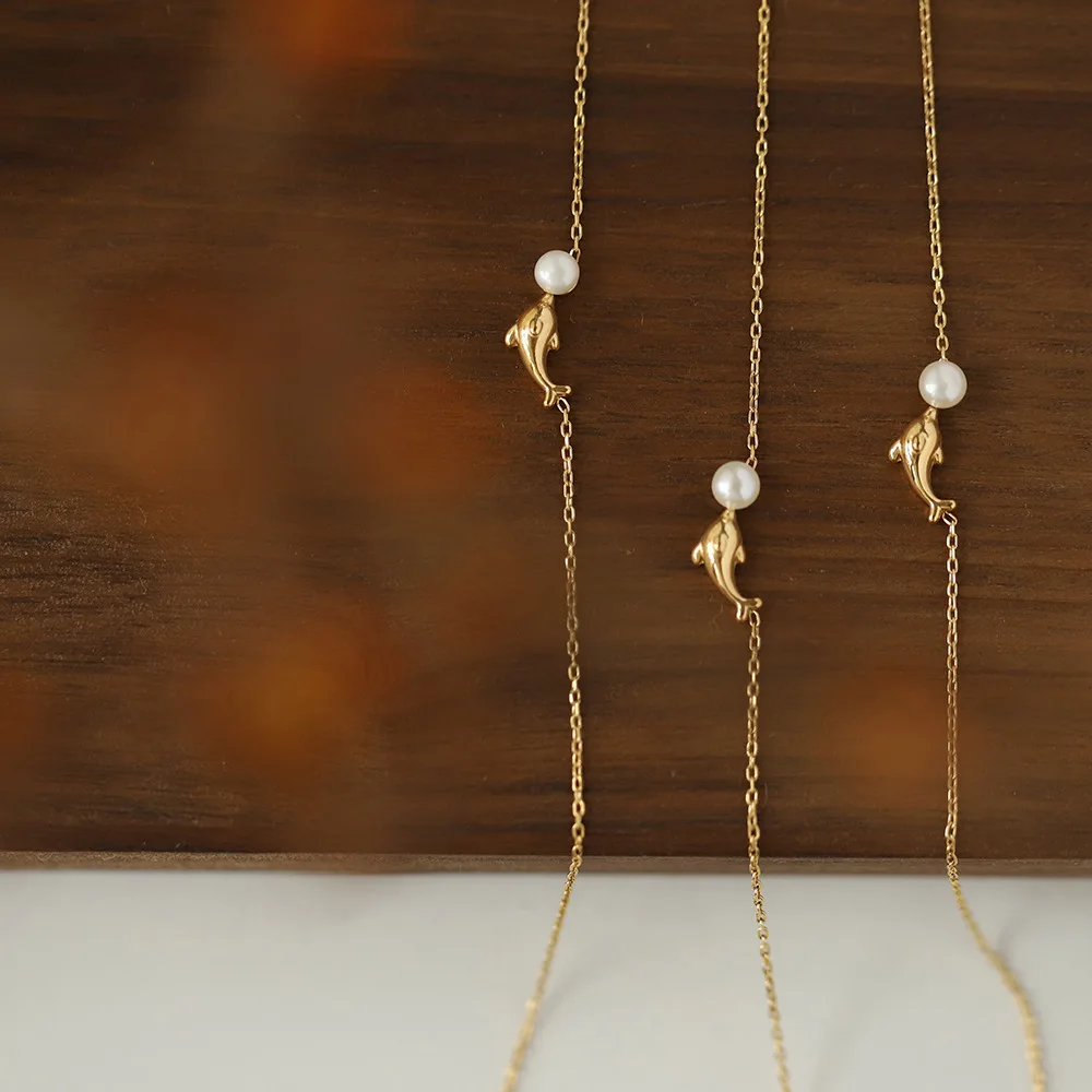 316L Stainless Steel Freshwater Pearl Mini Dolphin Pendant Necklace For Women Gold Color Neck Chain Waterproof Jewelry Gift
