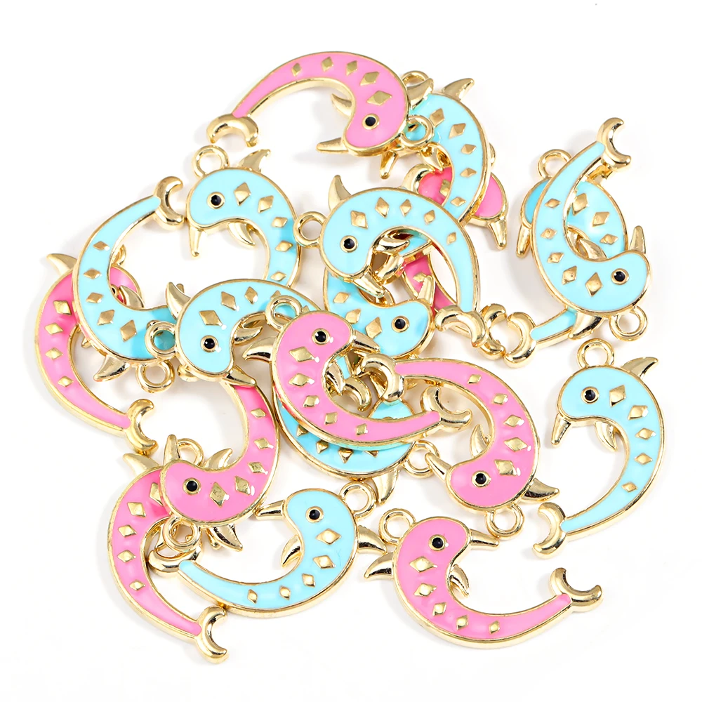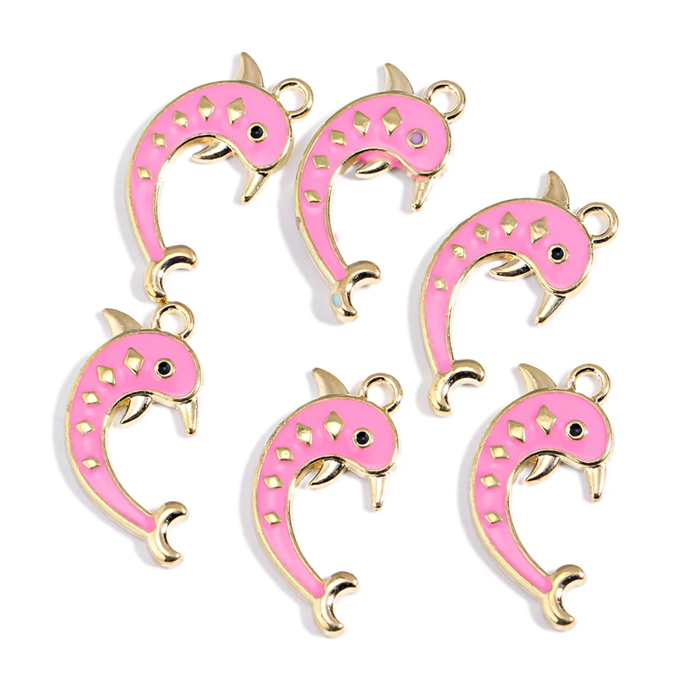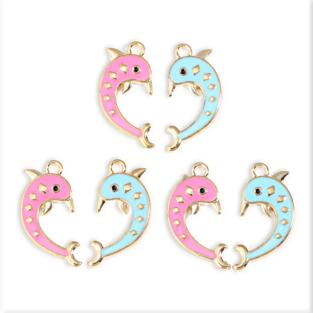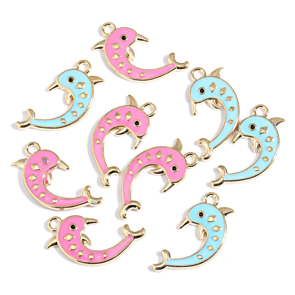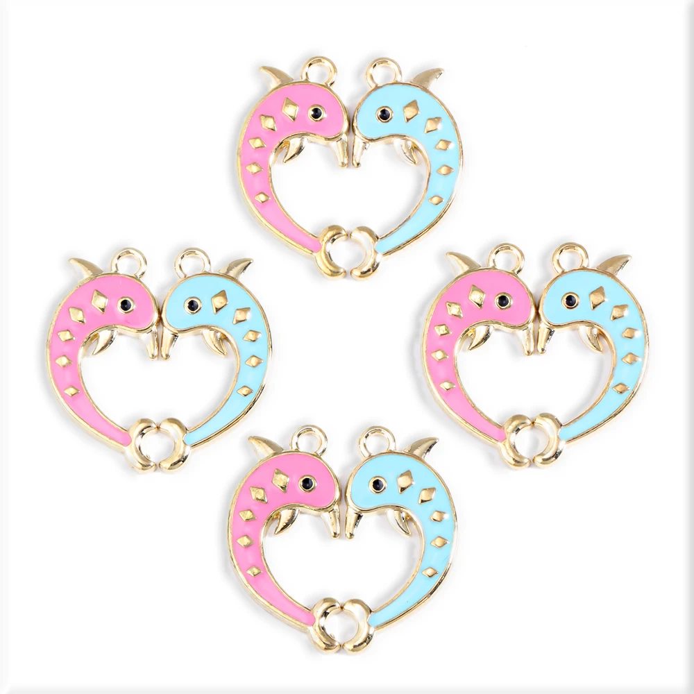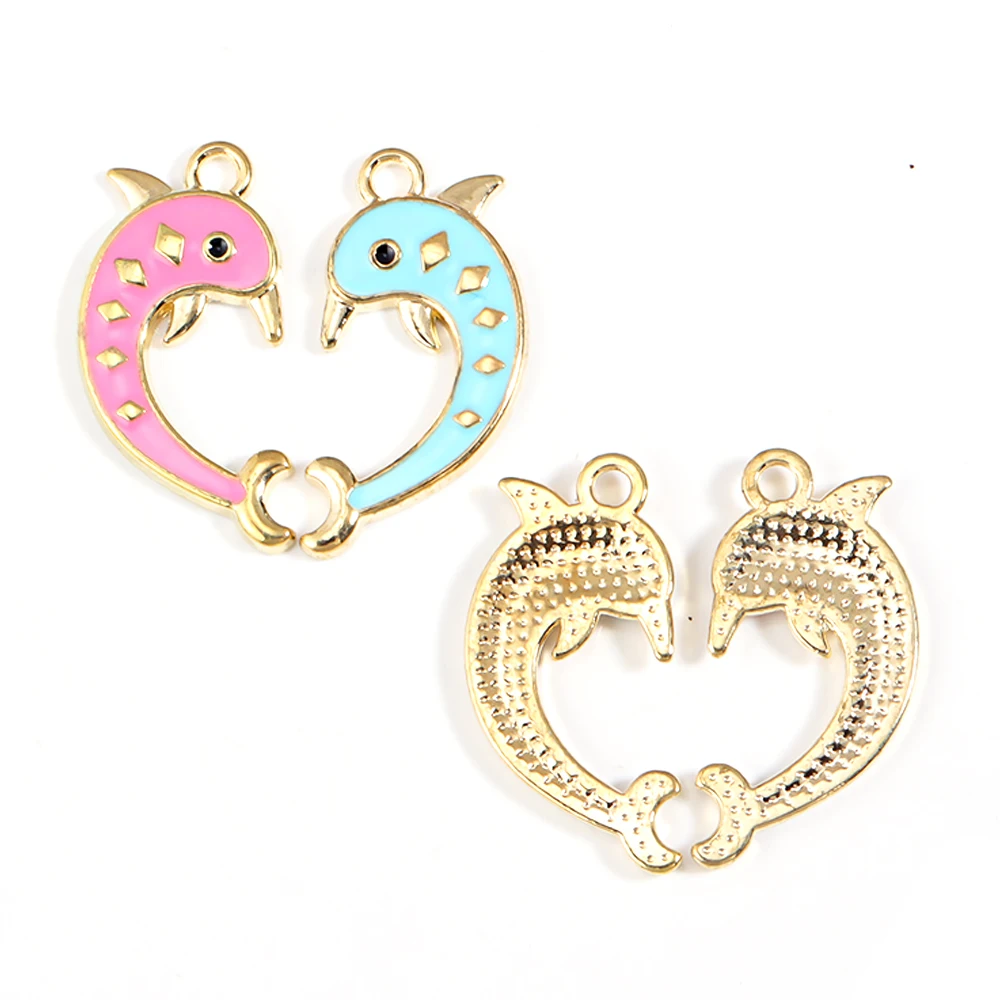 Fashion Splicing Love Best Friend Pendant Cute Dolphin enamel Charm For couples Bracelet Necklace DIY handmade jewelry Gift