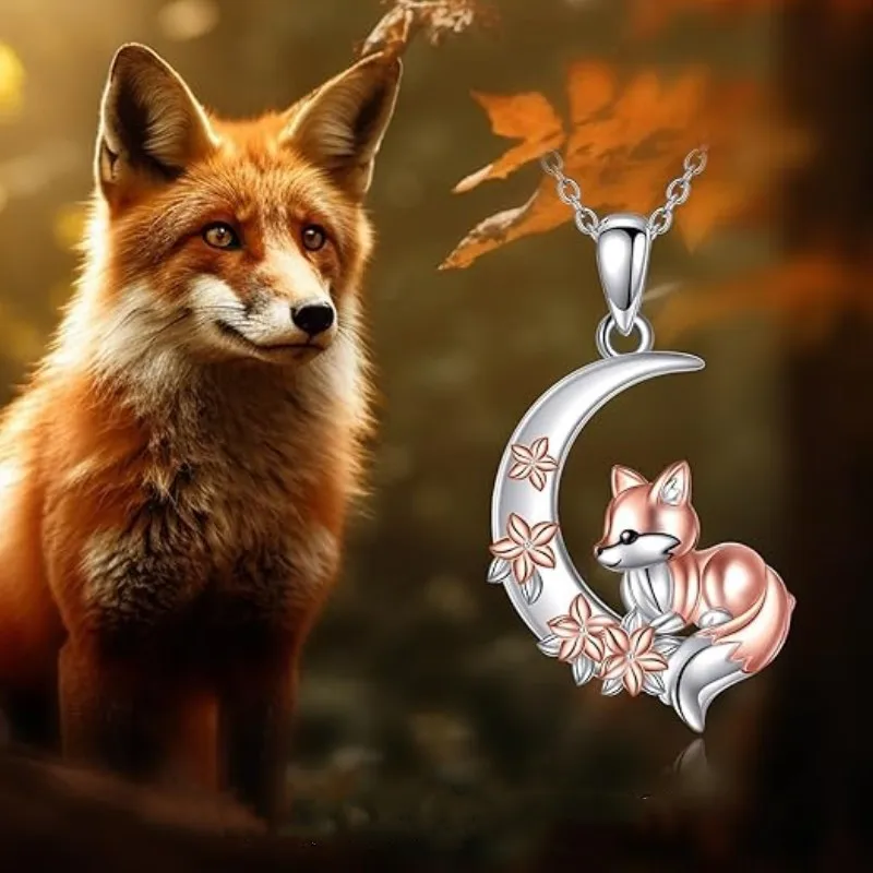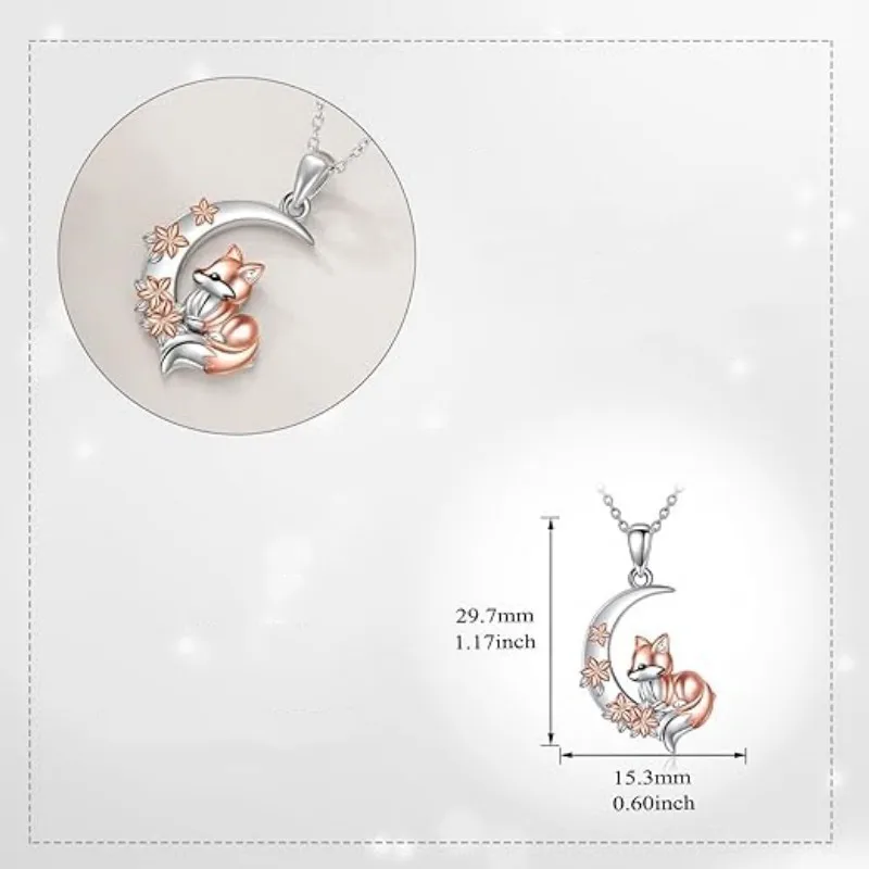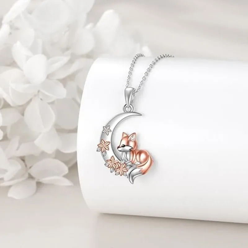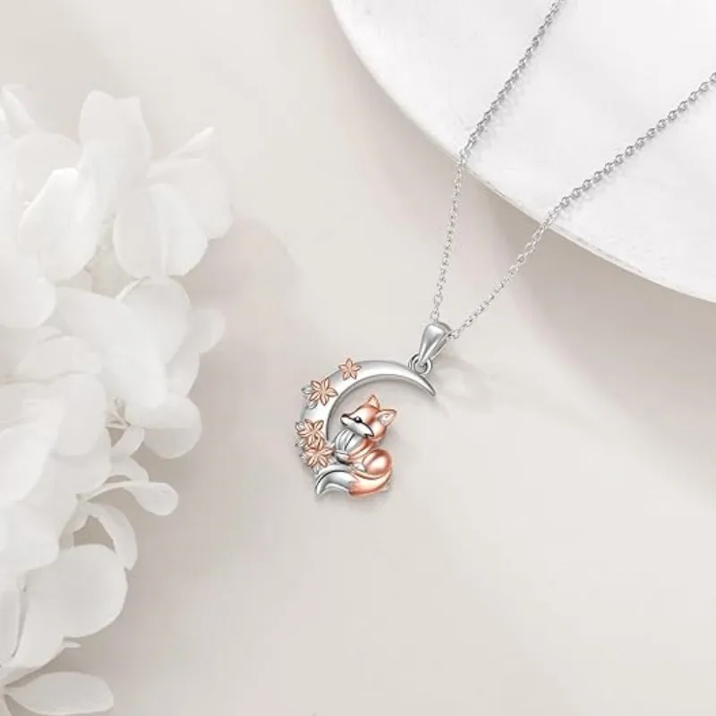European American New Forest Style Unique Charming and Beautiful Fox Necklace 925 Silver Rose Gold Color Flower Moon Necklaces
