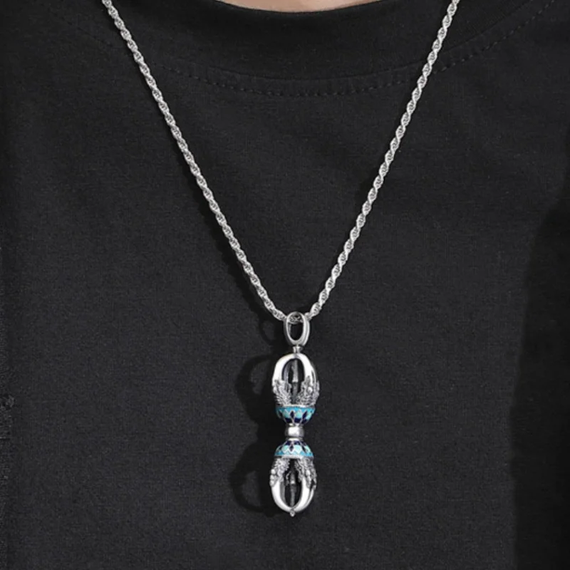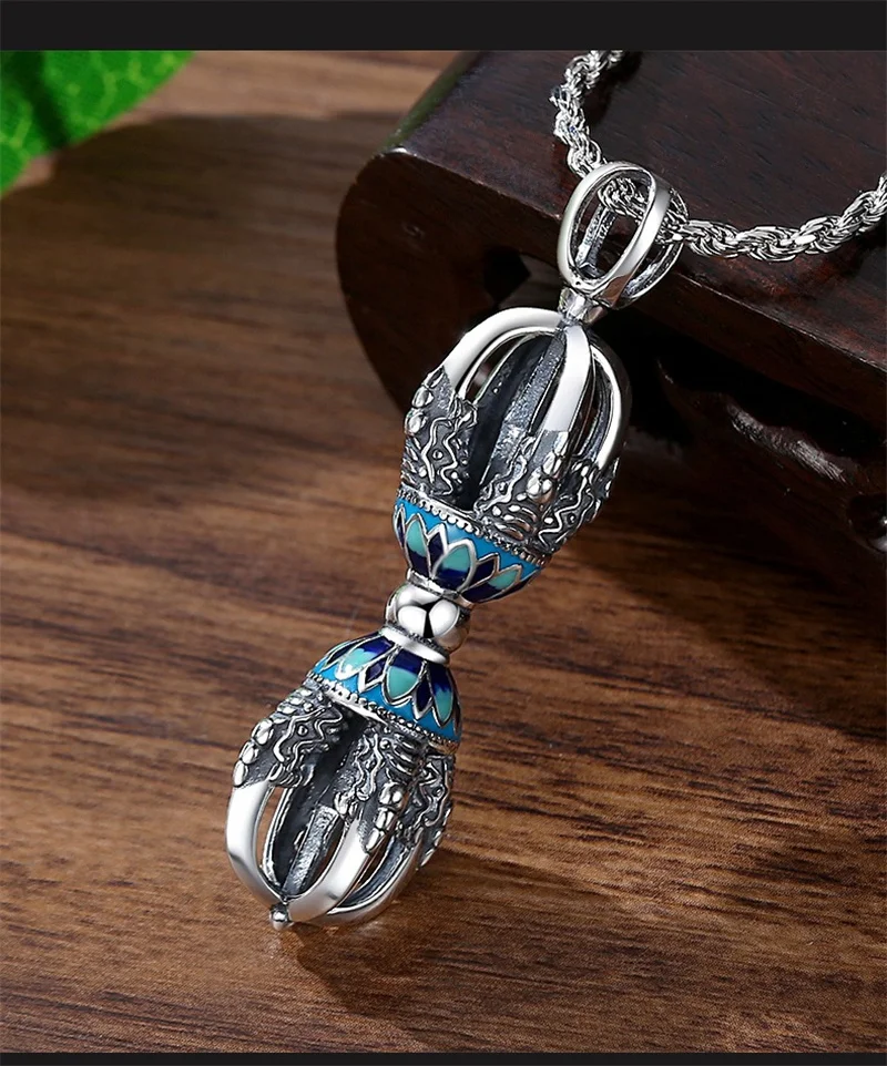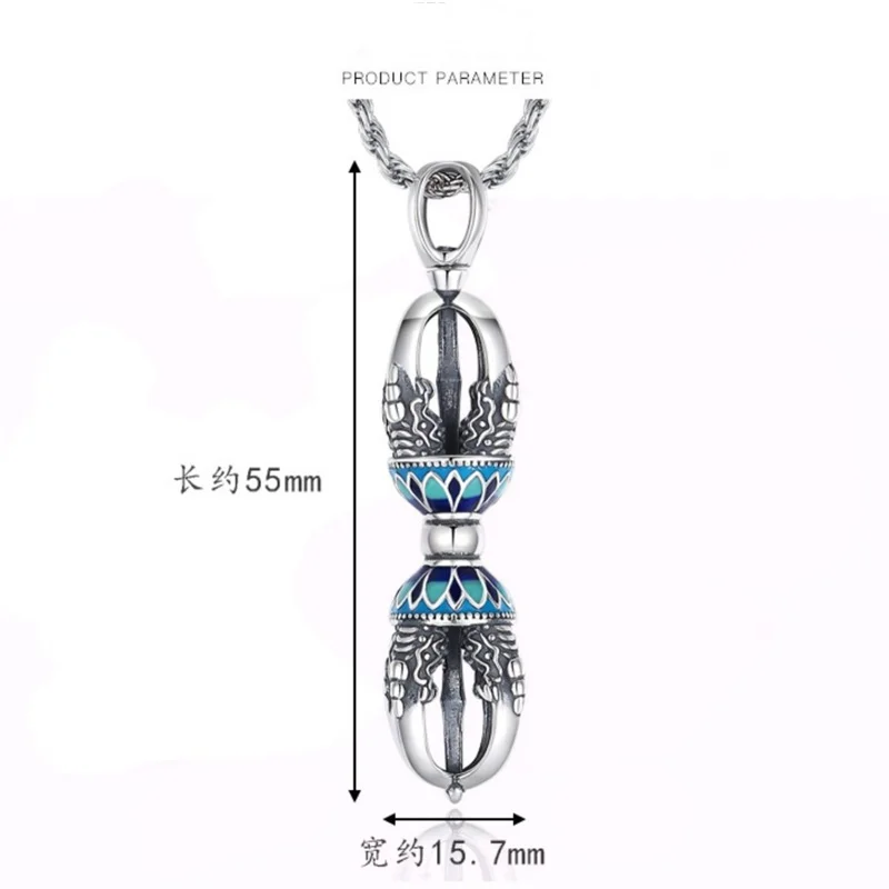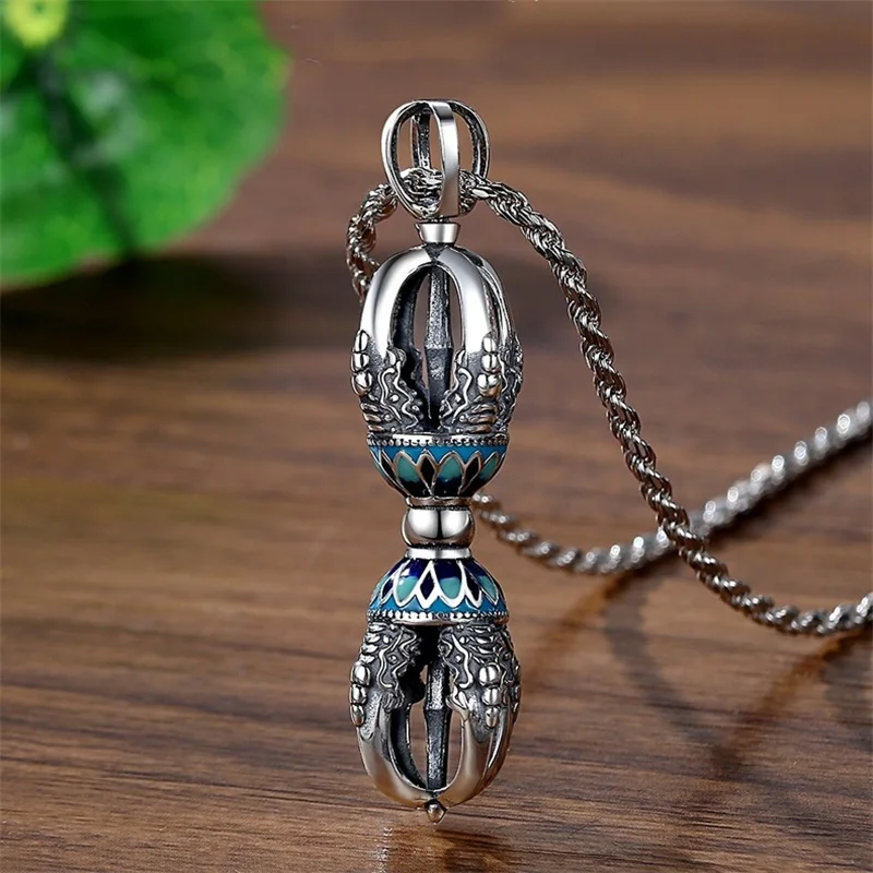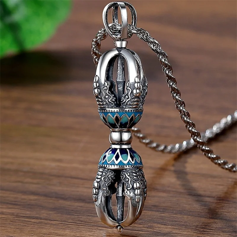 Retro Drop Glue Lotus Flower Necklace Male Sweater Chain Blessing Vajra Pestle Pendant For Men Jewelry
