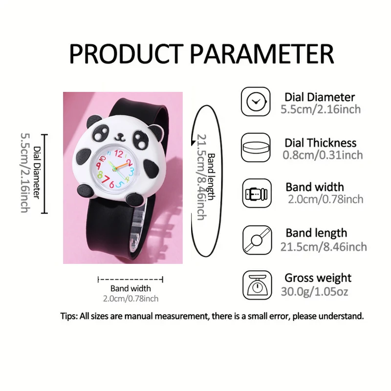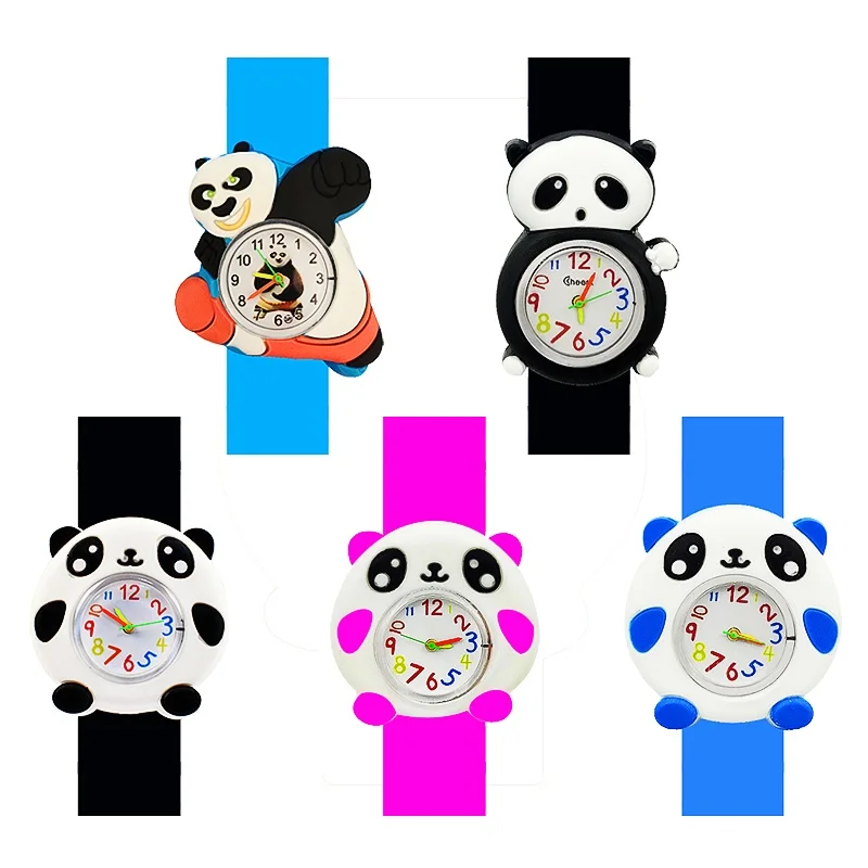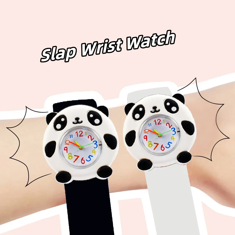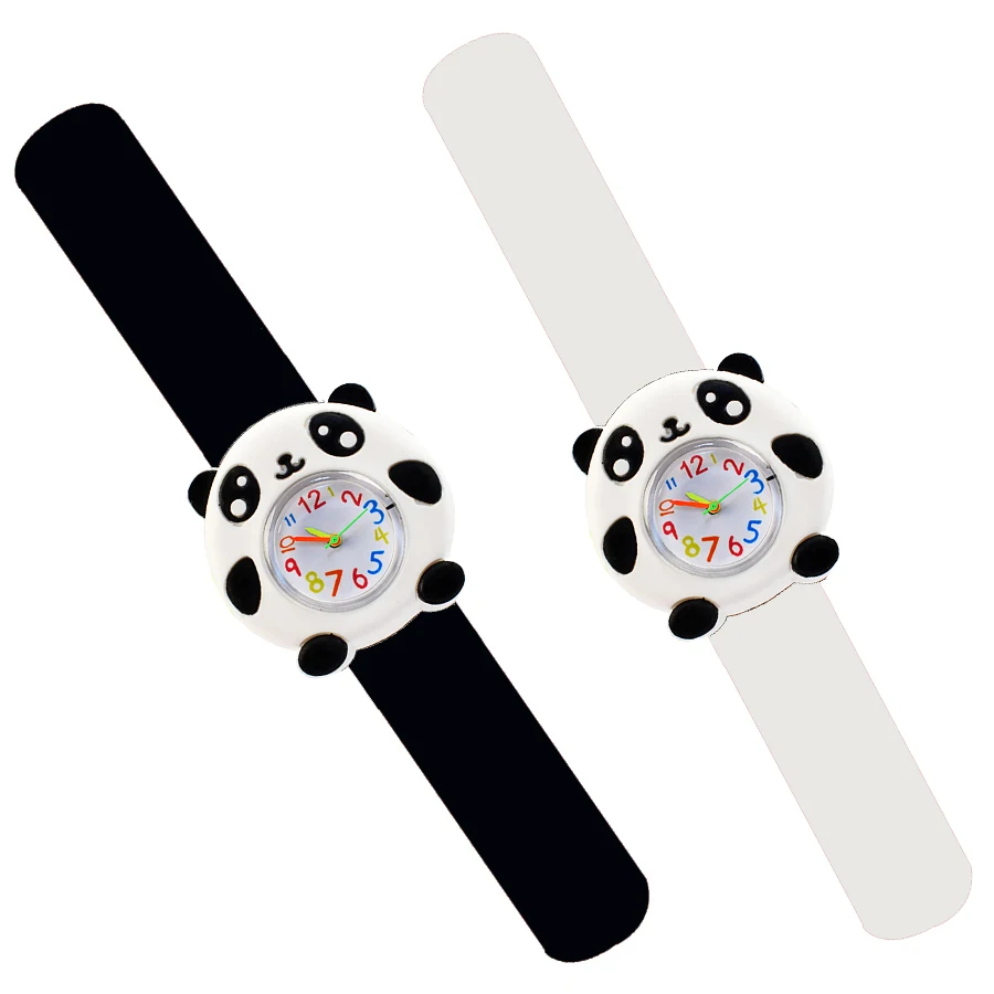 Cute Black Panda Children's Watch Fashion Bracelet Silicone Strap Kids Slap Watches Kindergarten Prize Activity Gift Clock