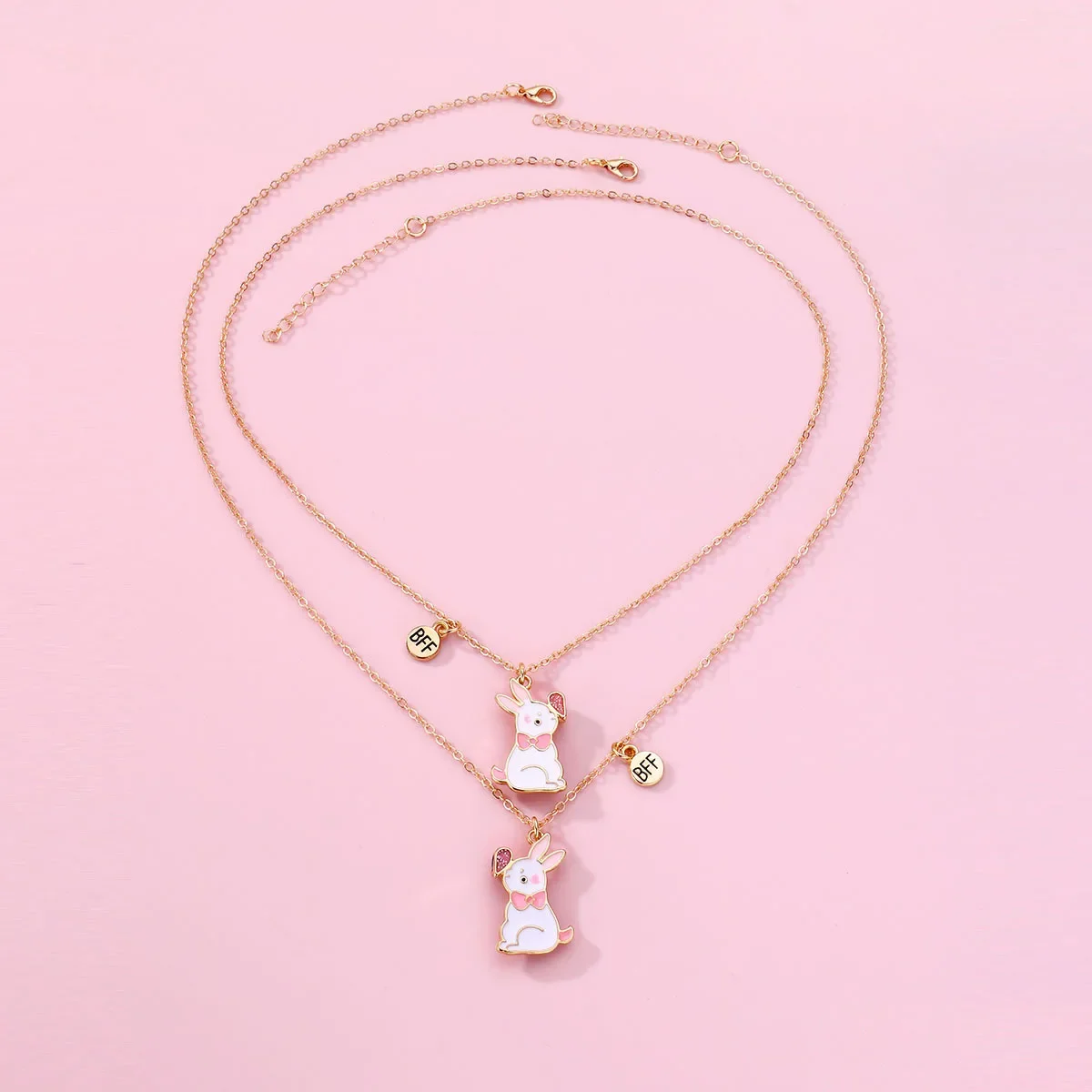 Cute Rabbits Charm Magnetic Necklace for Men Women Girls Fashion Cartoon Friendship Bunny Pendant Splicing Necklace Party Gifts