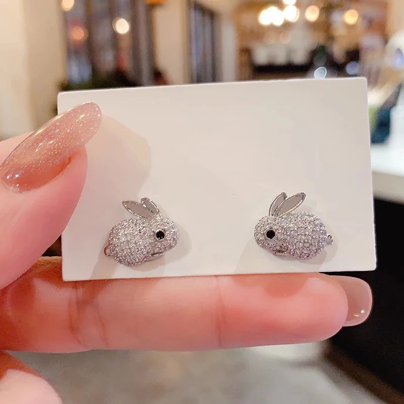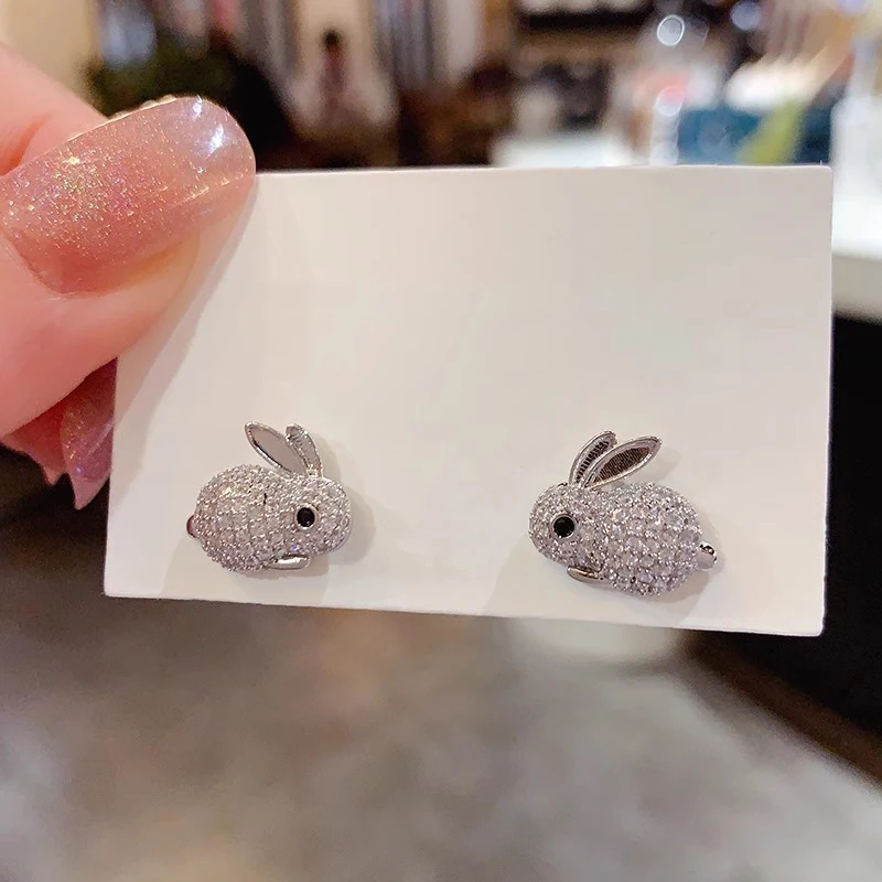 Huitan Cute Rabbit Stud Earrings for Girls Bling Bling Crystal CZ Exquisite Female Earrings Daily Wear Party Statement Jewelry