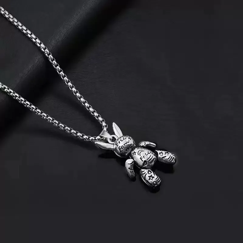 New vintage printed rabbit stainless steel pendant necklace hip-hop style couple party necklace street personality style lucky g