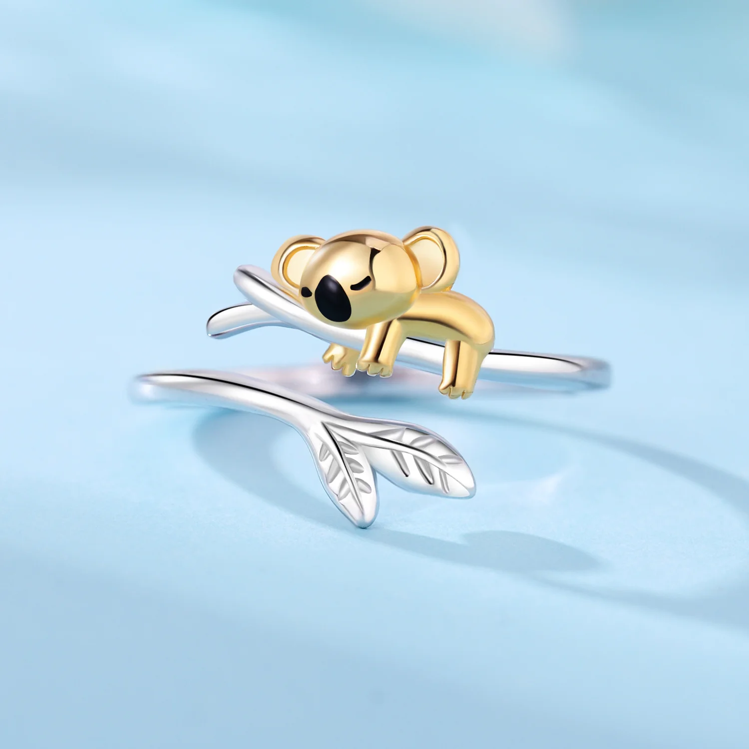 Orstarry S925 Sterling Silver Golden Sloth Animal Opening Ring For Women Original Finger Ring Jewelry Party Fine Trendy Gifts