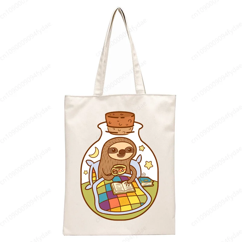 Sloth Fashion Canvas Bag Women Girls Simple Large Capacity Storage Handbag Shoulder Bag Tote Reusable Student Bookbag