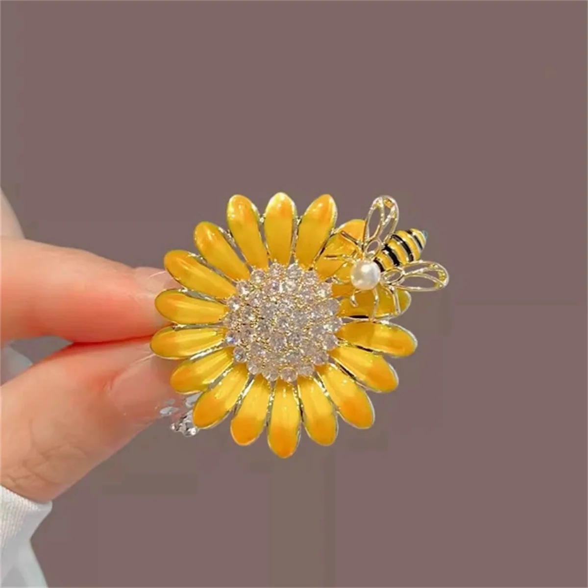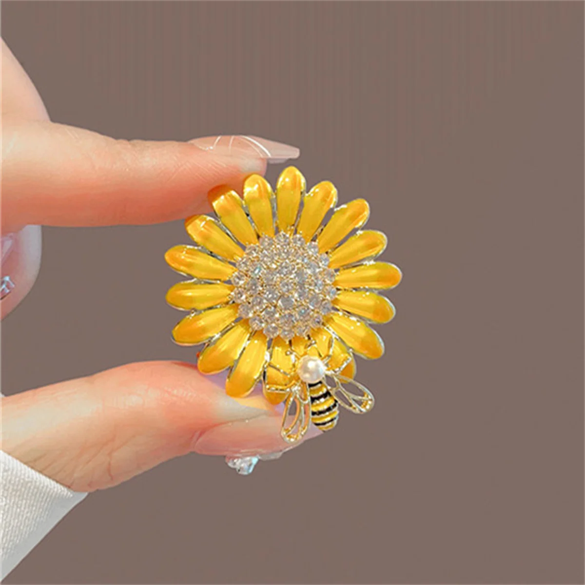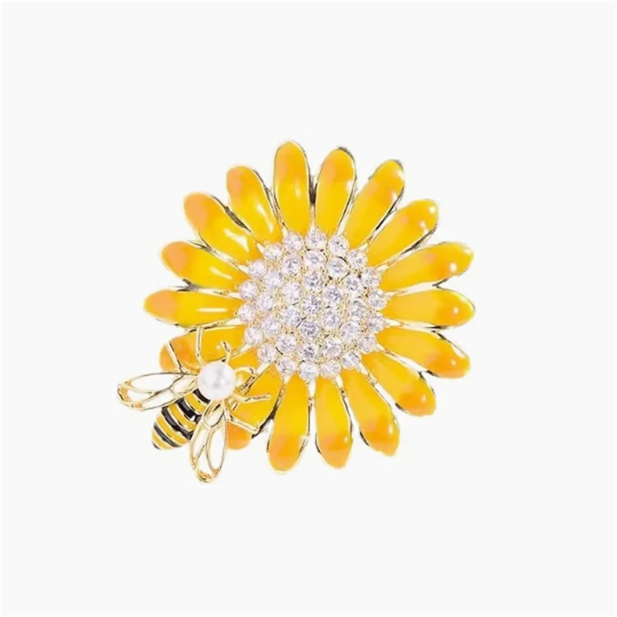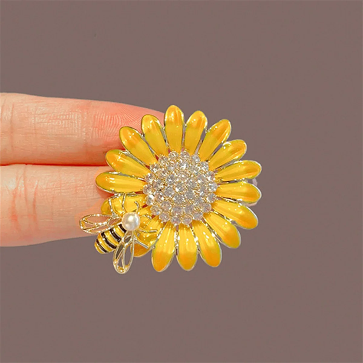 1Pc Charm Enamel Sunflower Bee Brooch Korean Fashion Pin Personalized Creative Jewelry Accessories Party Banquet Birthday Gift