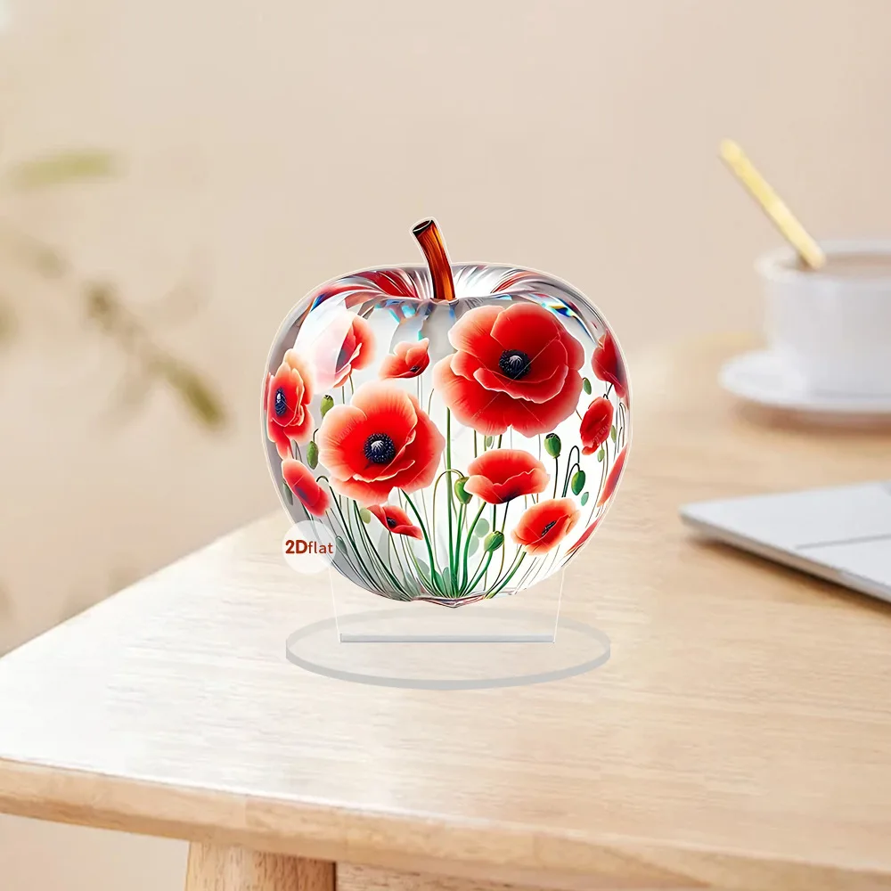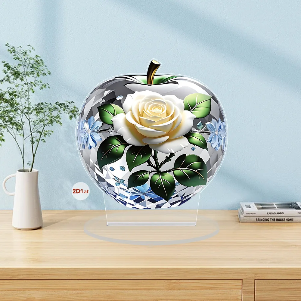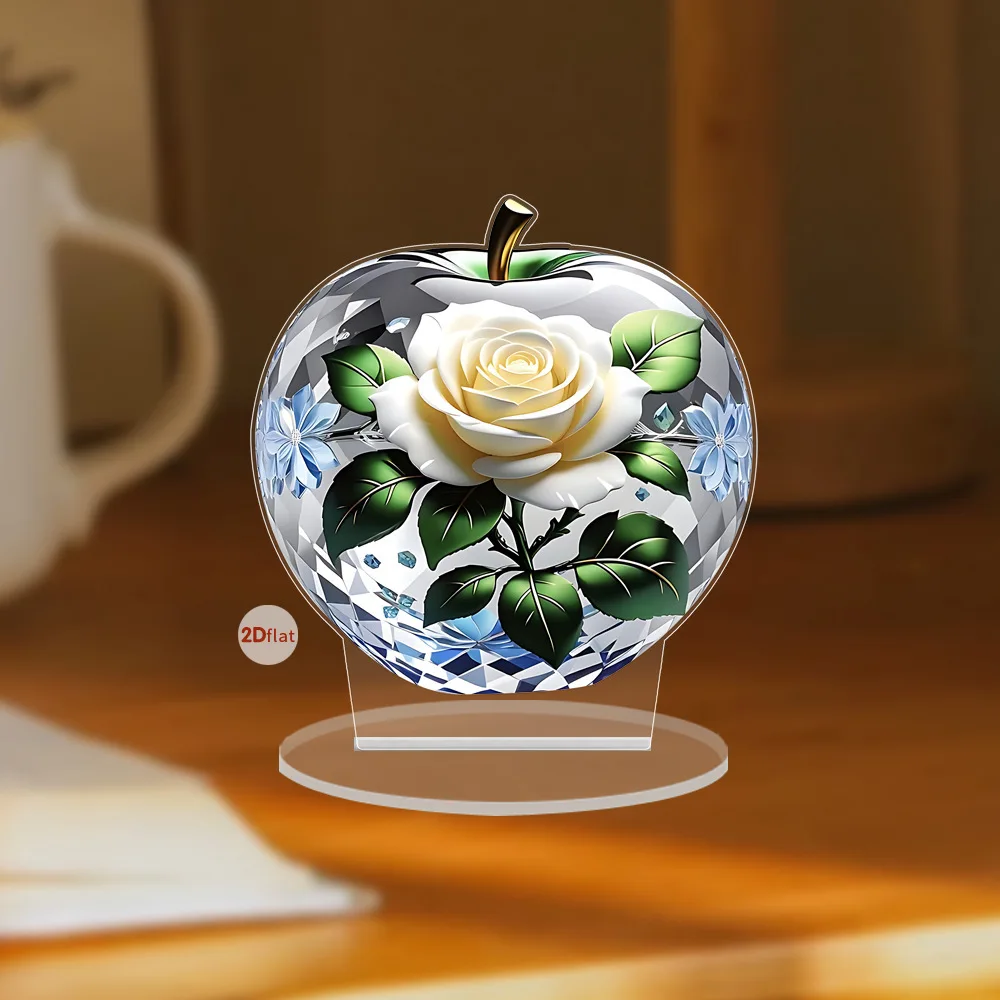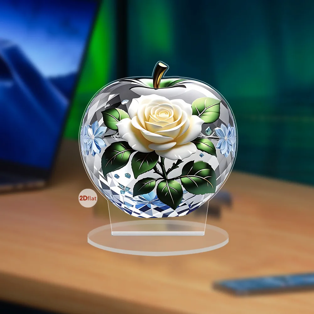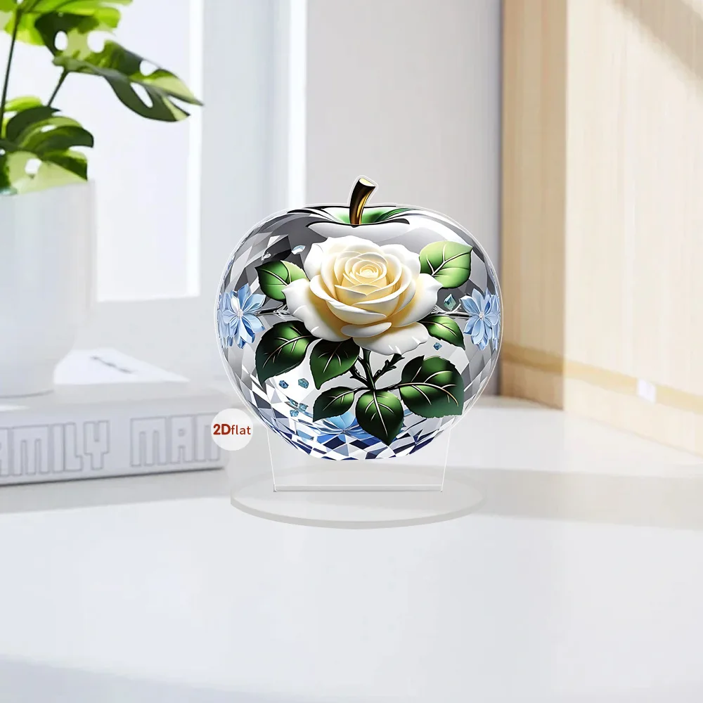 Crystal Apple Cherry Blossom Tree Rose Flower Desktop Ornament Acrylic Home Bookshelf Decoration Creative Pattern Decor Gift