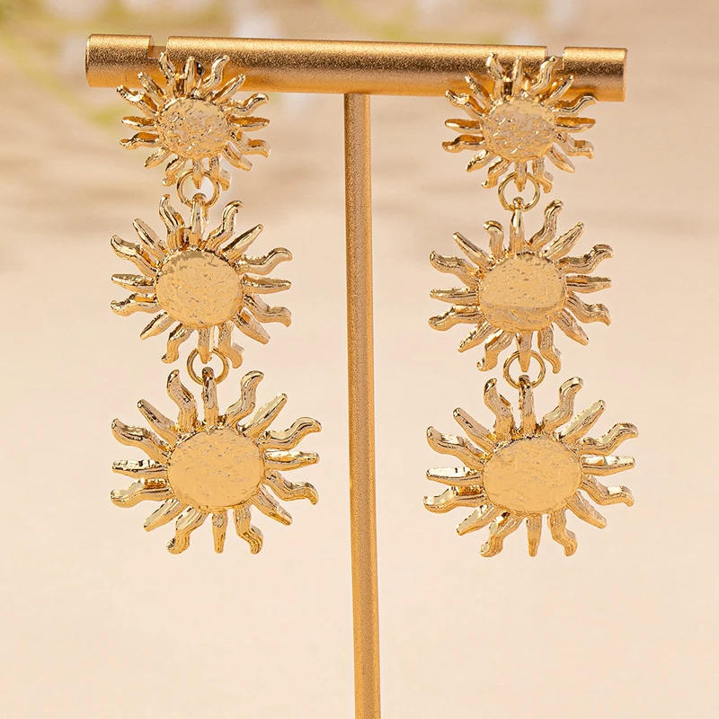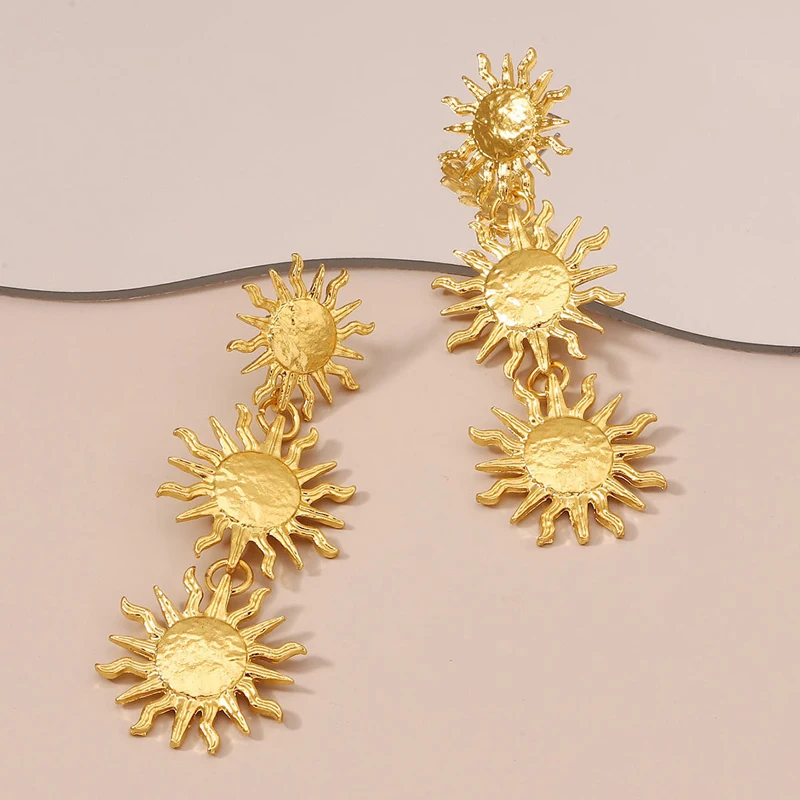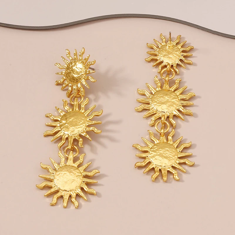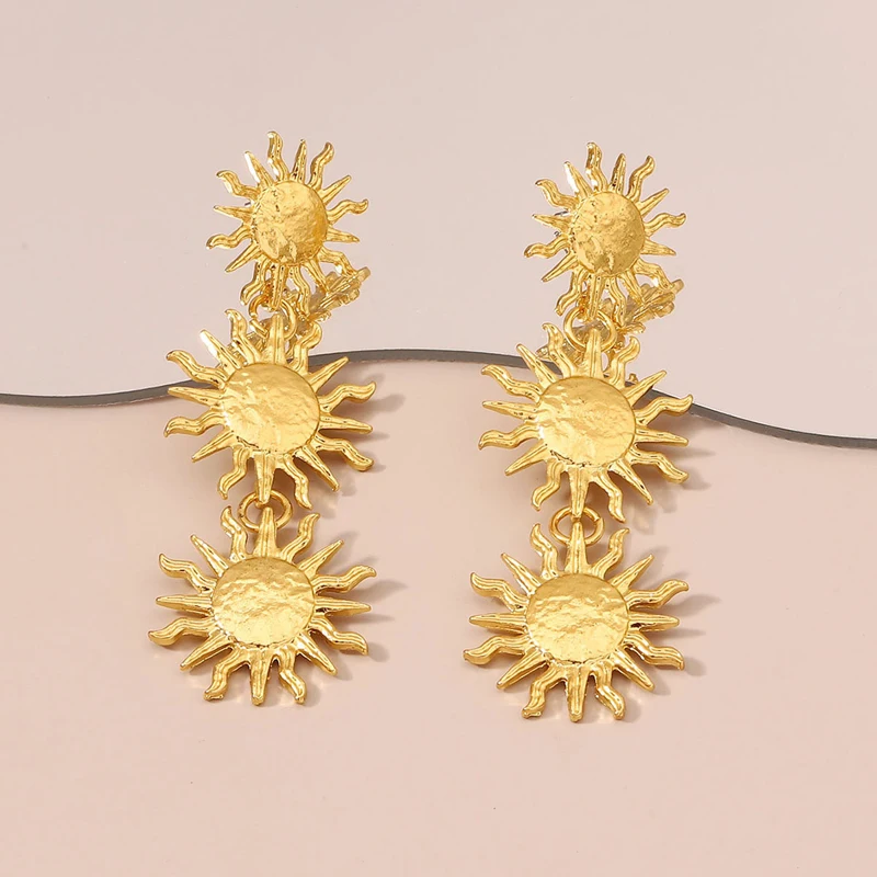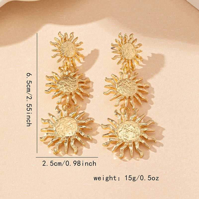 Retro Metal Sunflower Stud Earrings for Women Luxury Gold Color Three Sunflower Pendant Earring Fashion Beach Party Jewelry Gift