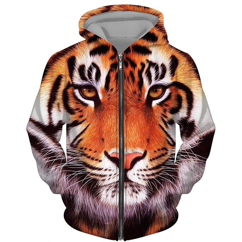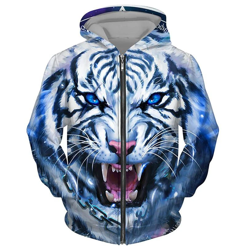 Trend Tiger Pattern Zip Up Hoodies For Men Fashion Autumn Long Sleeve 3D Animals Printed Pullovers Loose Streetwear Cool Hoodie
