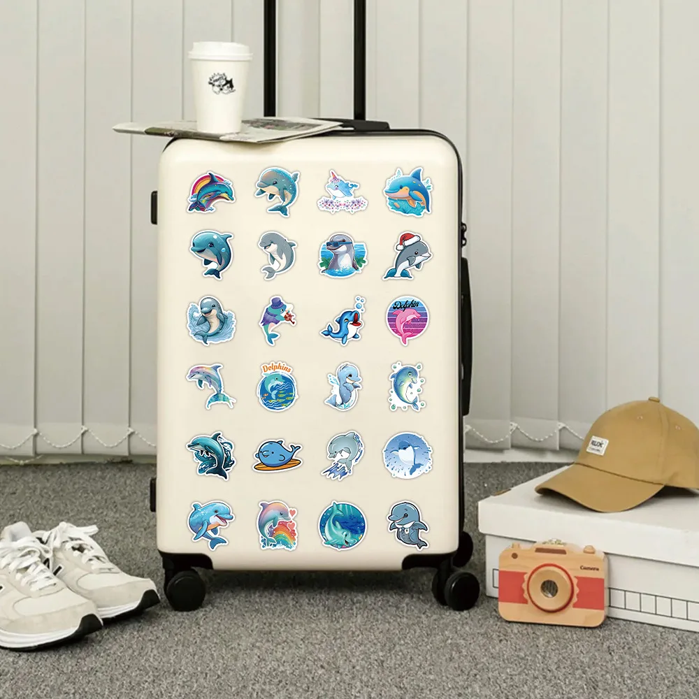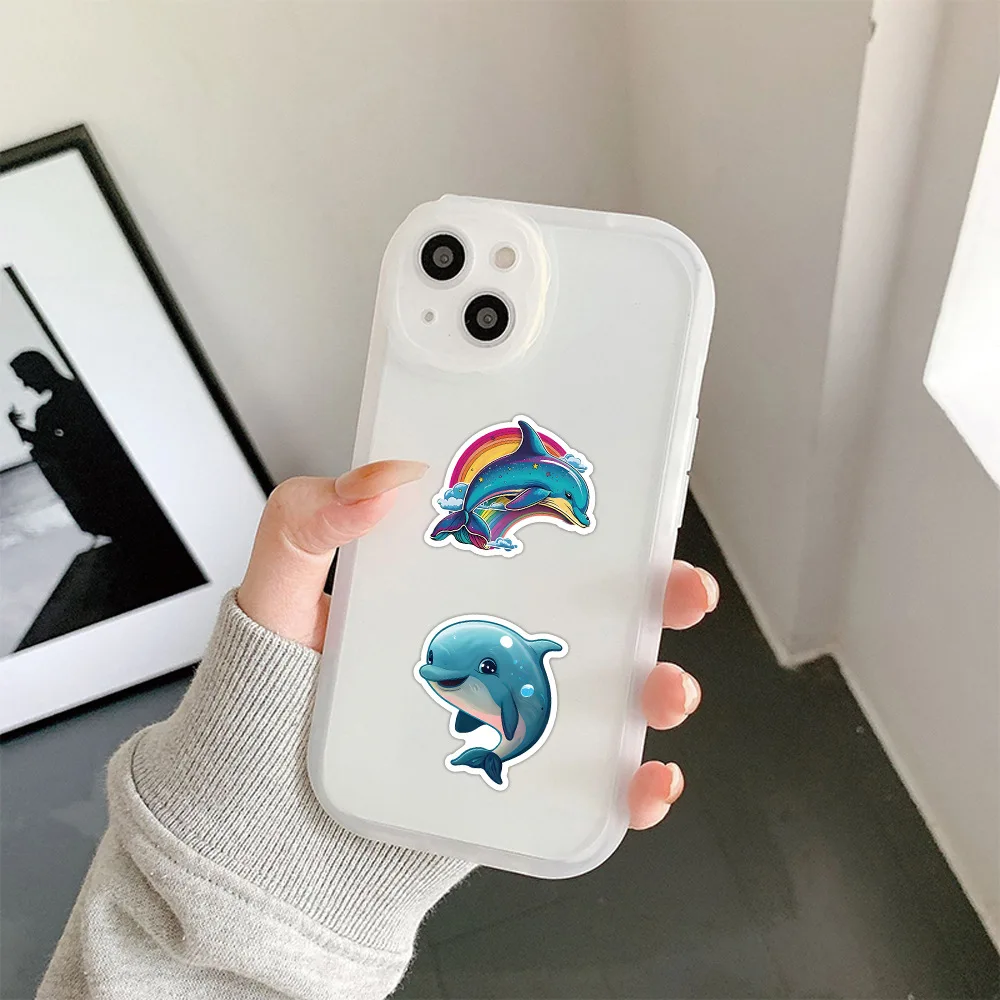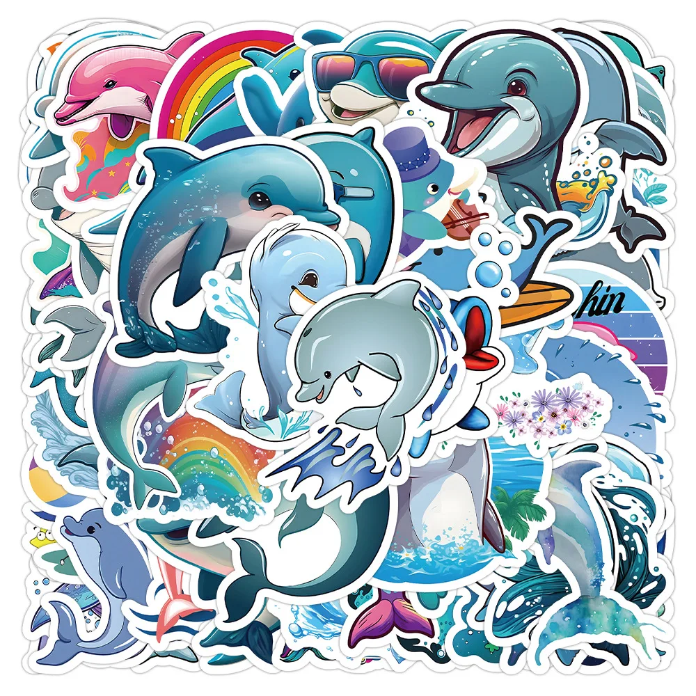 10/50PCS Cute Animal Dolphin Sticker Waterproof Graffiti Creative Decoration Desk Bookshelf Mobile Phone Case Decal Kids Toy