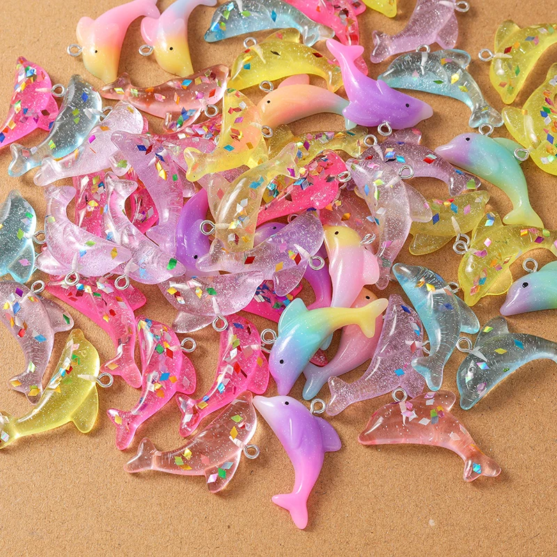 10pcs 35*14mm Cute Resin Dolphin Charms Pendants for Necklace Earrings DIY Kid's Jewelry Gift Accessories Supplies