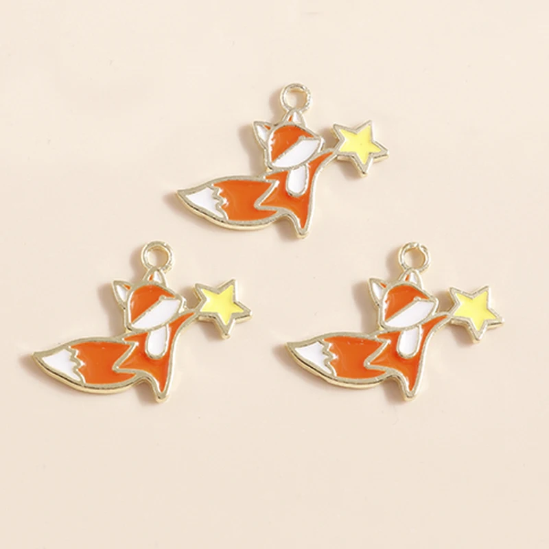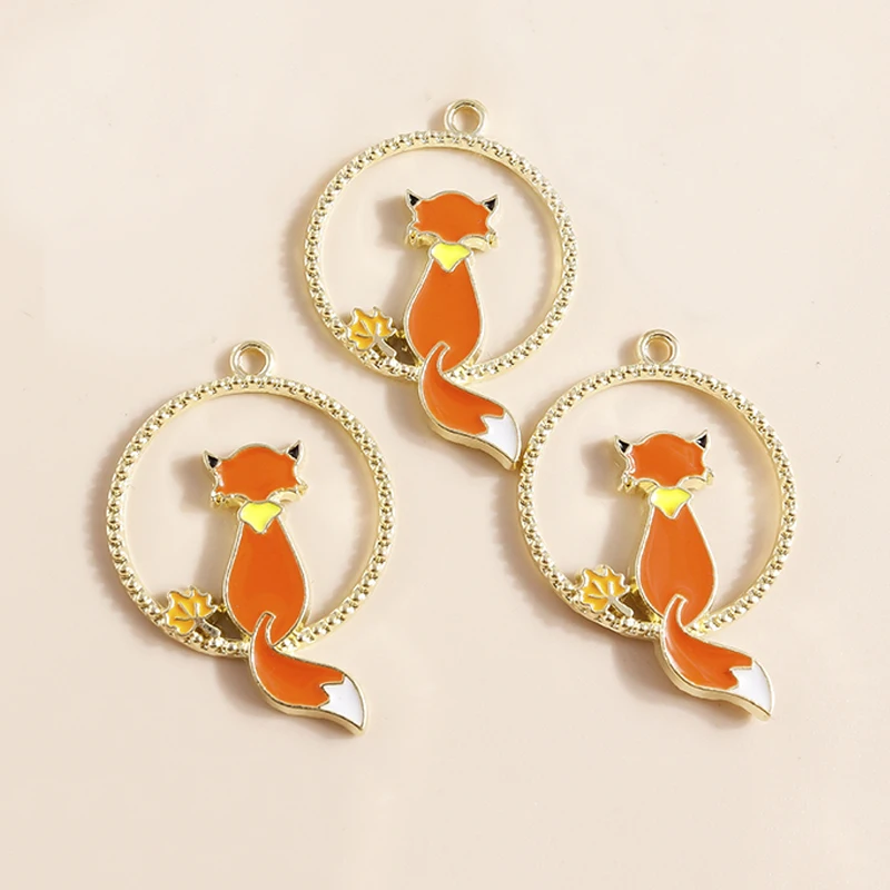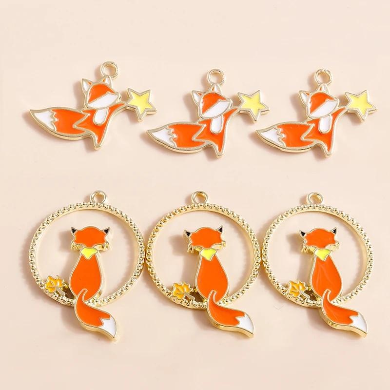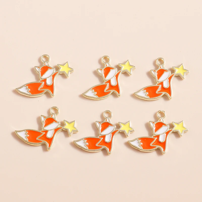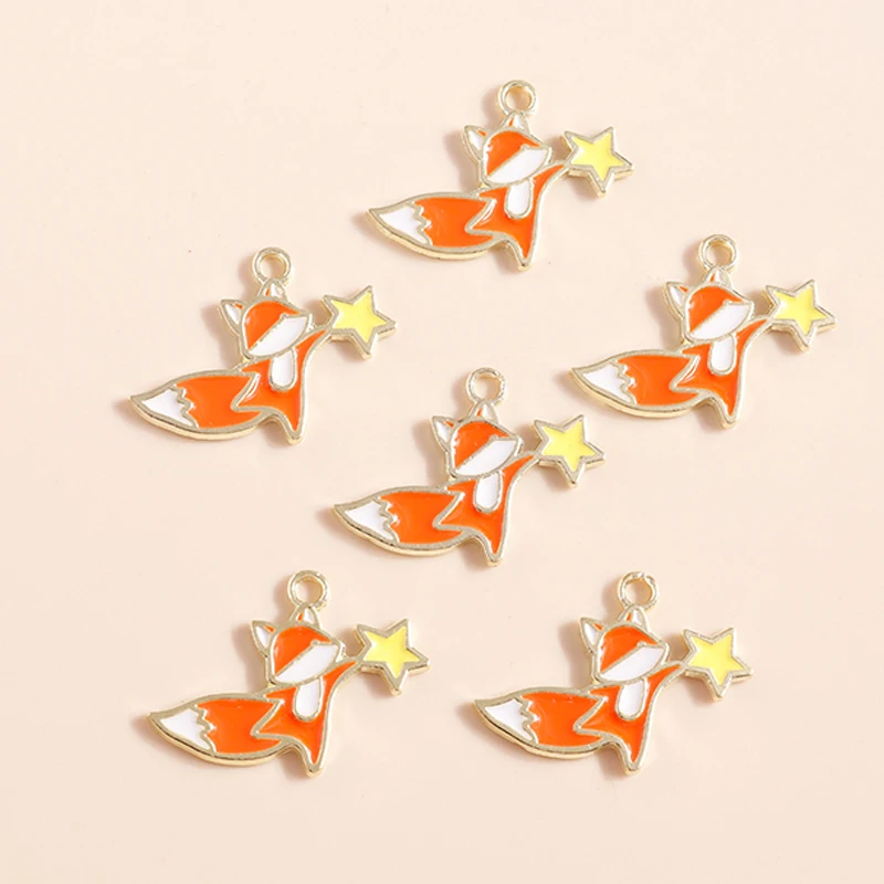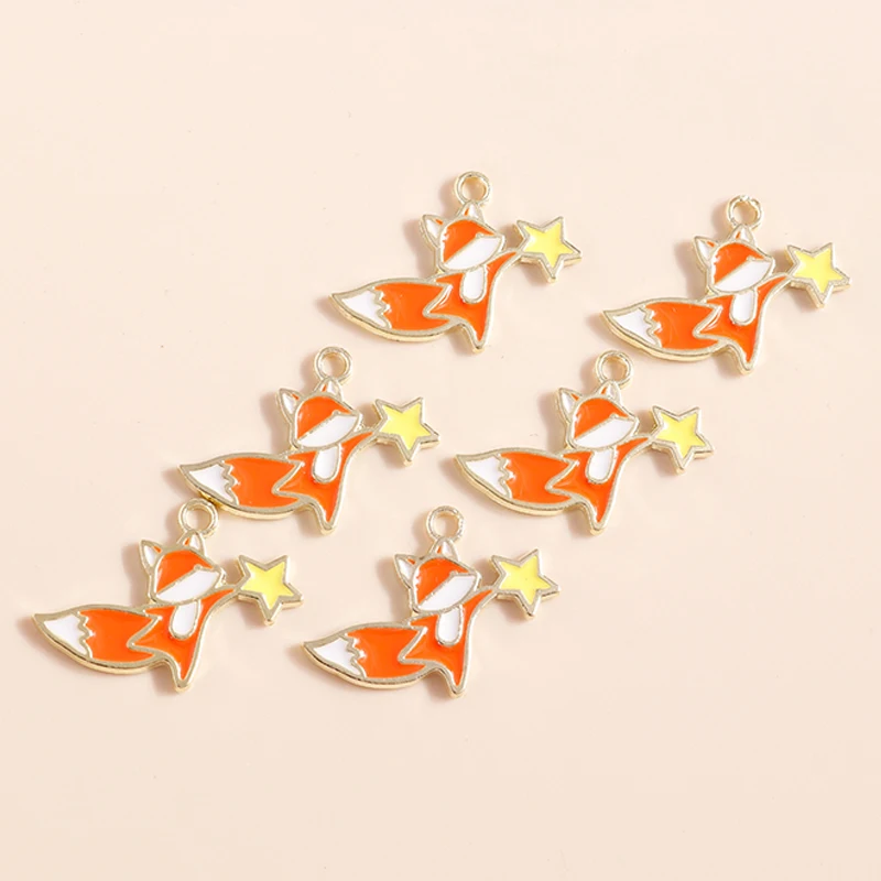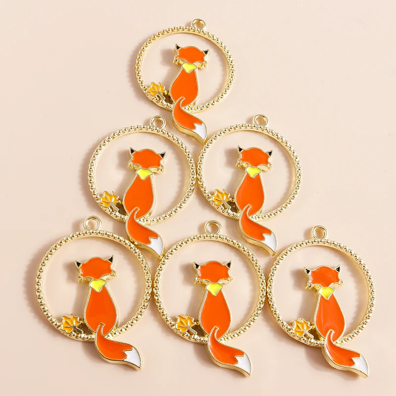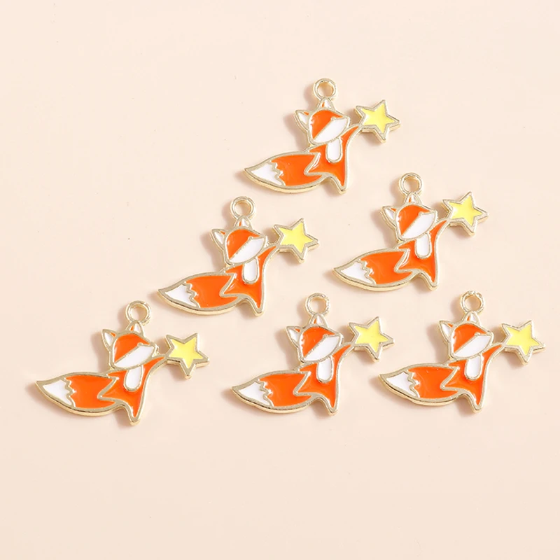 10pcs Cute Automn Maple Fox Charms for DIY Jewelry Making Animal Earrings Charms Necklaces Pendants Making Accessories
