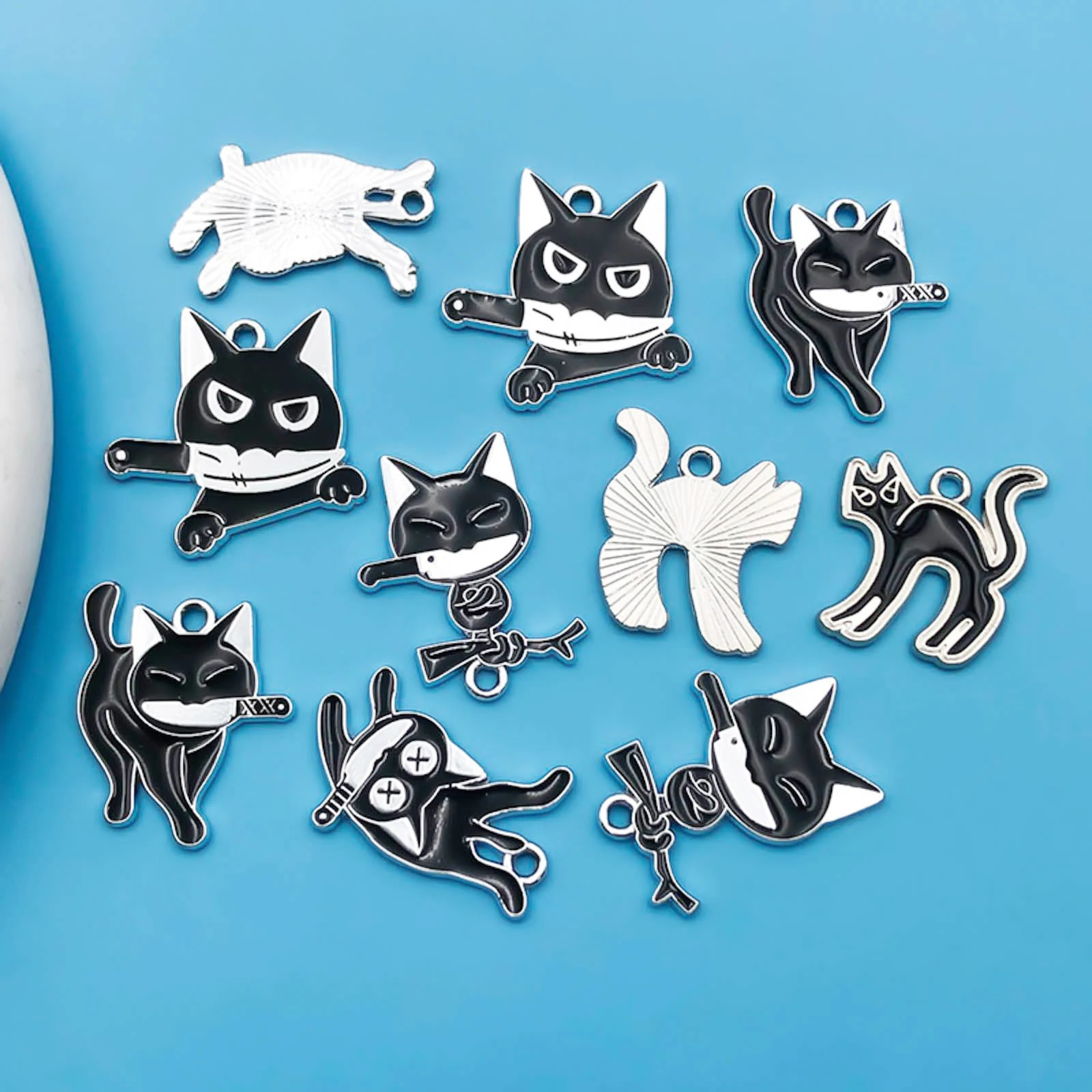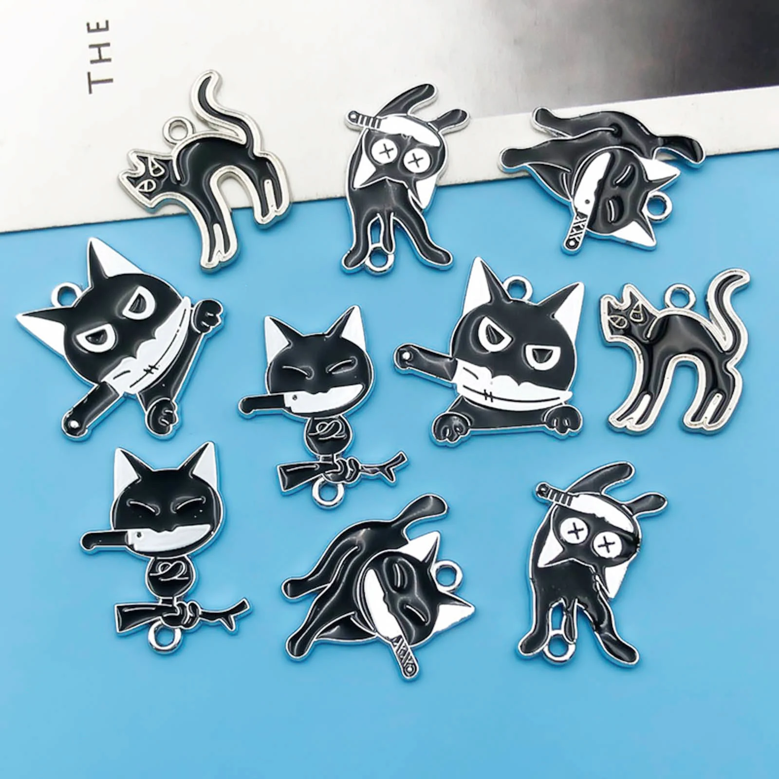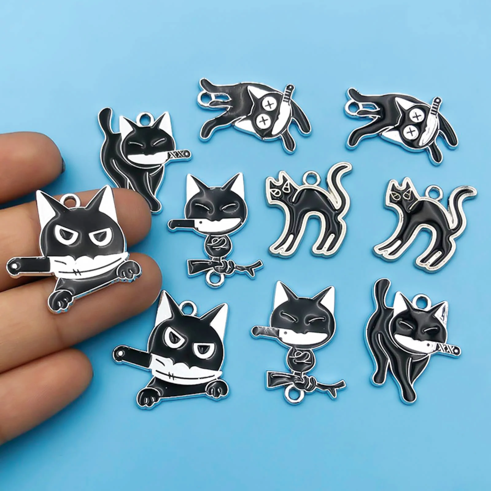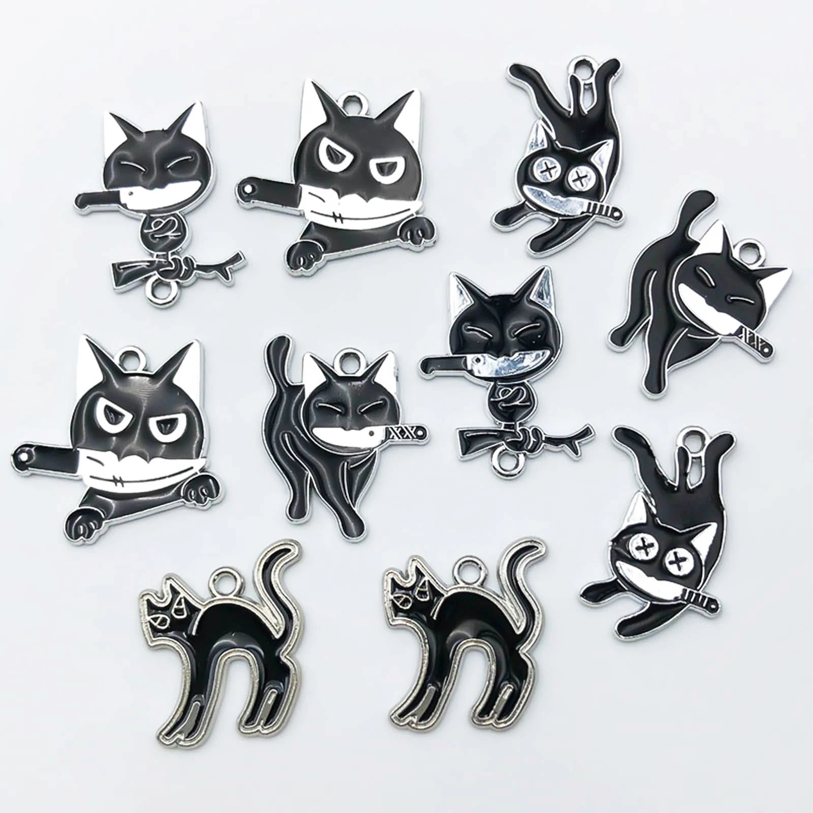 10pcs/lot Halloween Knife Cat Charms Black Knife Cat Series Enamel Alloy Pendants For Jewelry Making Earring Bracelet Necklace