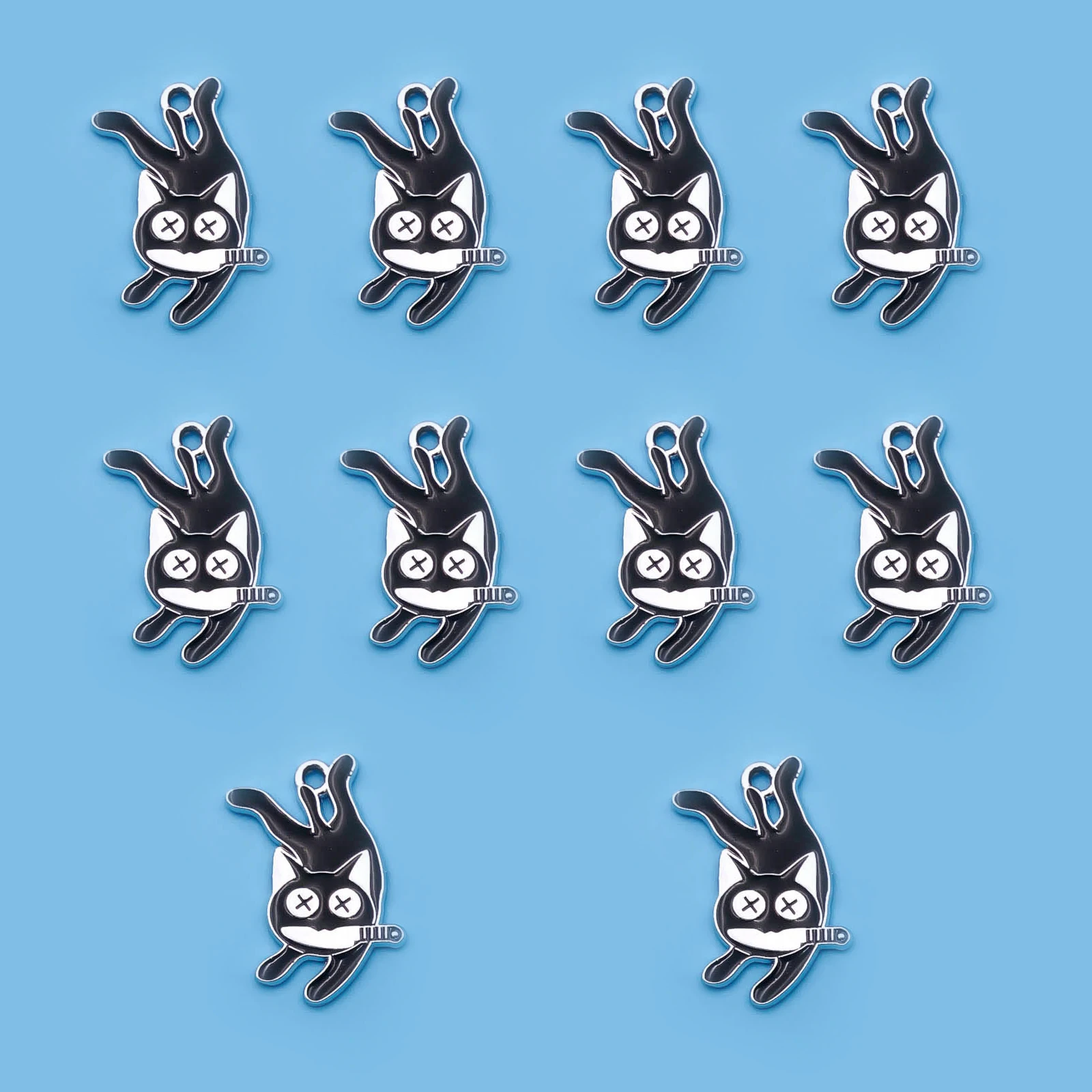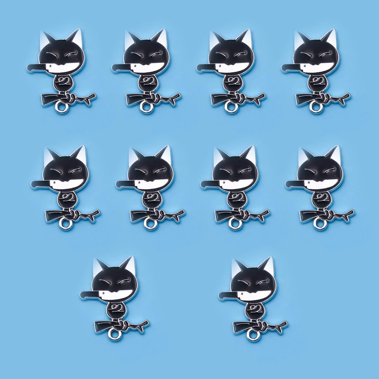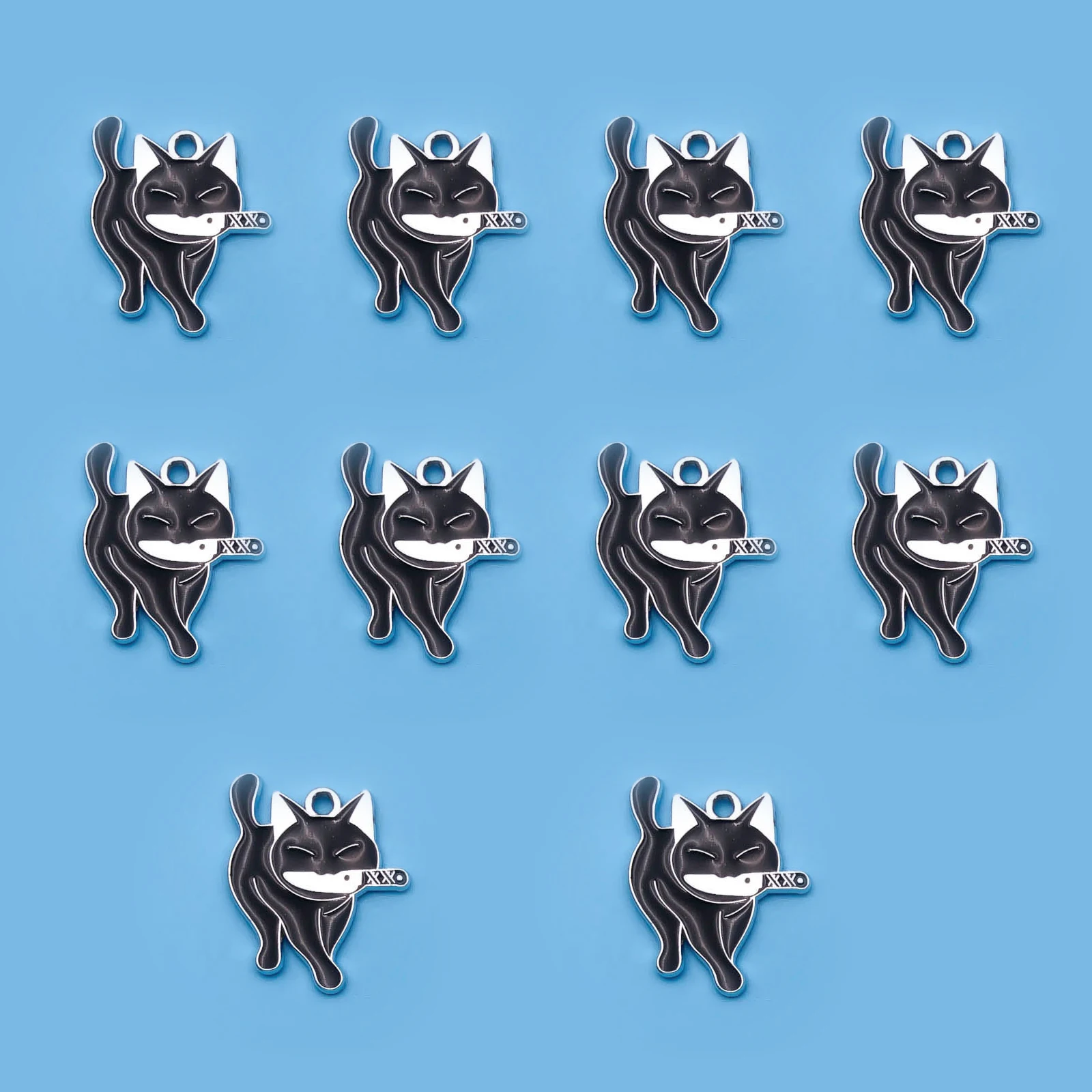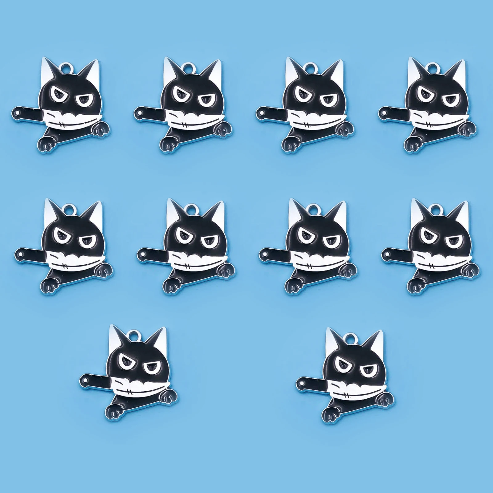 10pcs/lot Halloween Knife Cat Charms Black Knife Cat Series Enamel Alloy Pendants For Jewelry Making Earring Bracelet Necklace