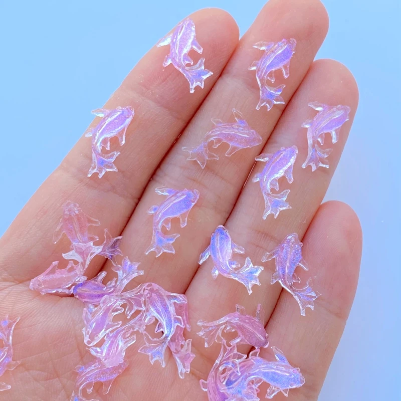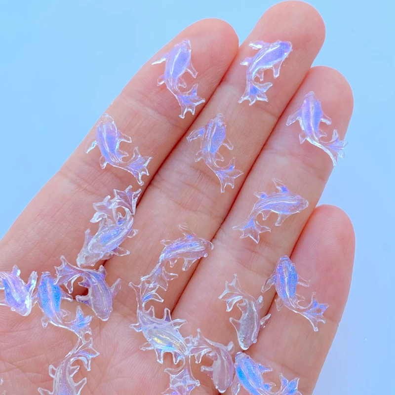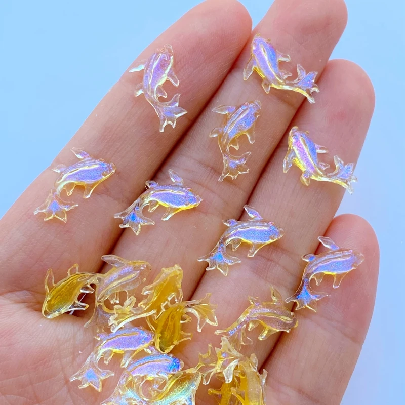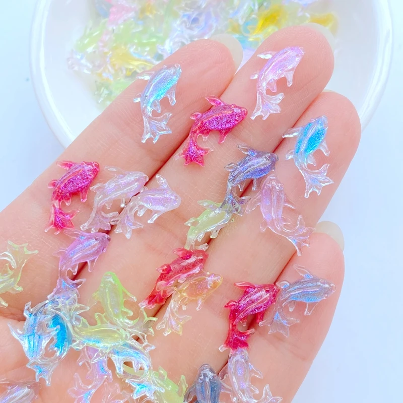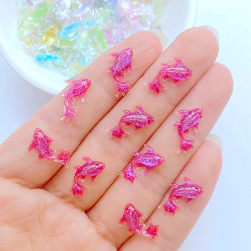 200Pcs New Cute Mini 8*15mm Shiny Fish Flat Back Resin Nail Enhancement Jewelry Craft Decoration Accessorie
