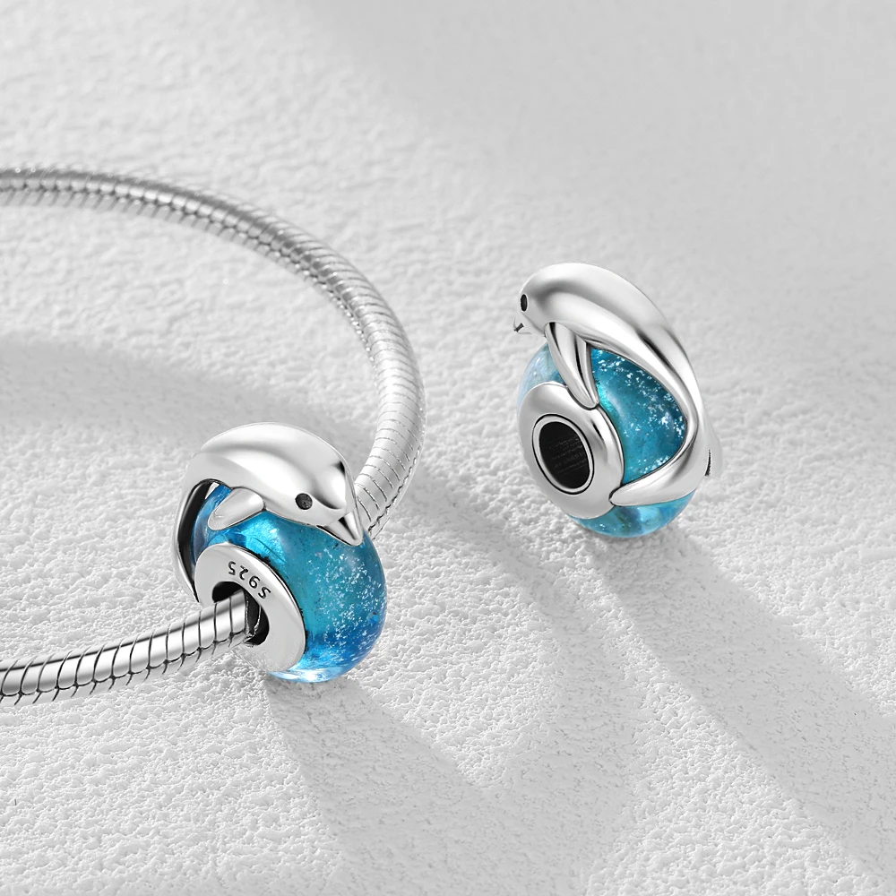 2025 New 925 Sterling Silver Blue Murano Glass Bead Dolphin Charm Pendant Fit Original Bracelet Accessory Women Jewelry Gift DIY