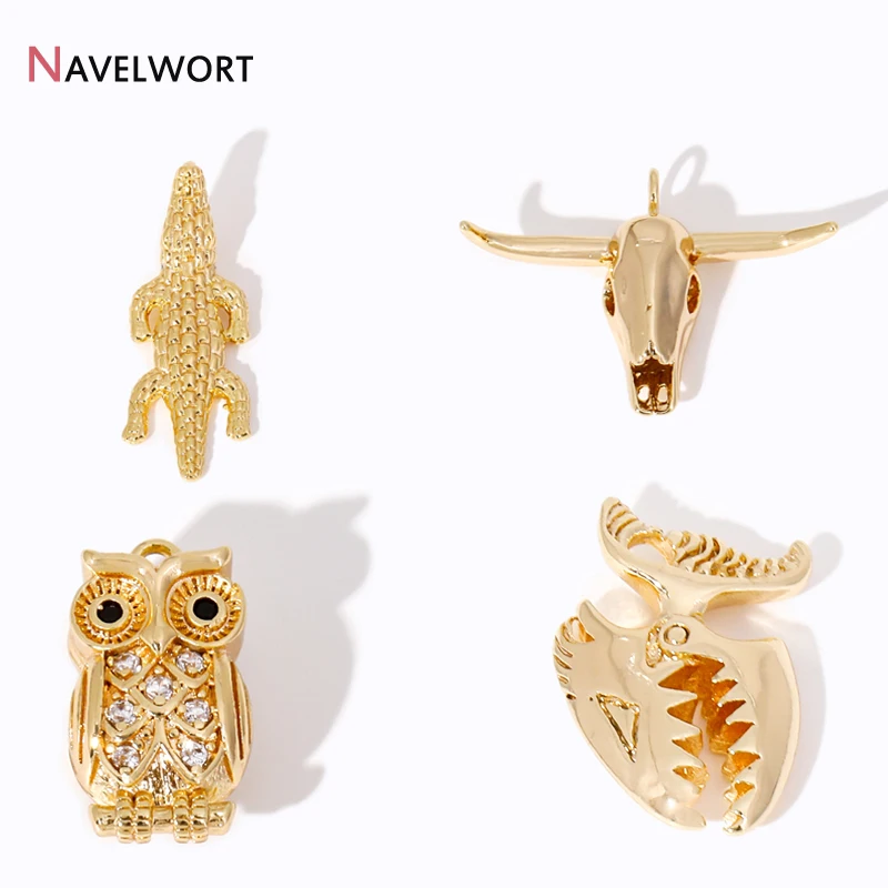 2Pcs 14K Gold Plated Brass Bull Head/Crocodile/Owl/Piranha Charms Pendants For DIY Earrings Making Findings,Jewelry Materials