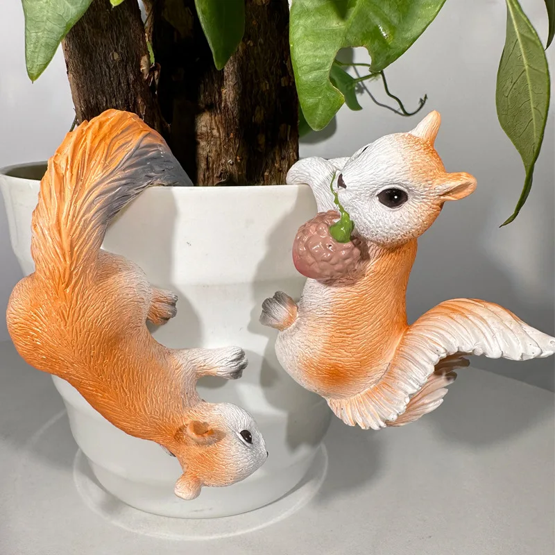 2pcs Creative Squirrel Hanging Planter Outdoor Garden Animal Fence Decor Durable Resin Flower Pot Decoration for Yard & Balcony