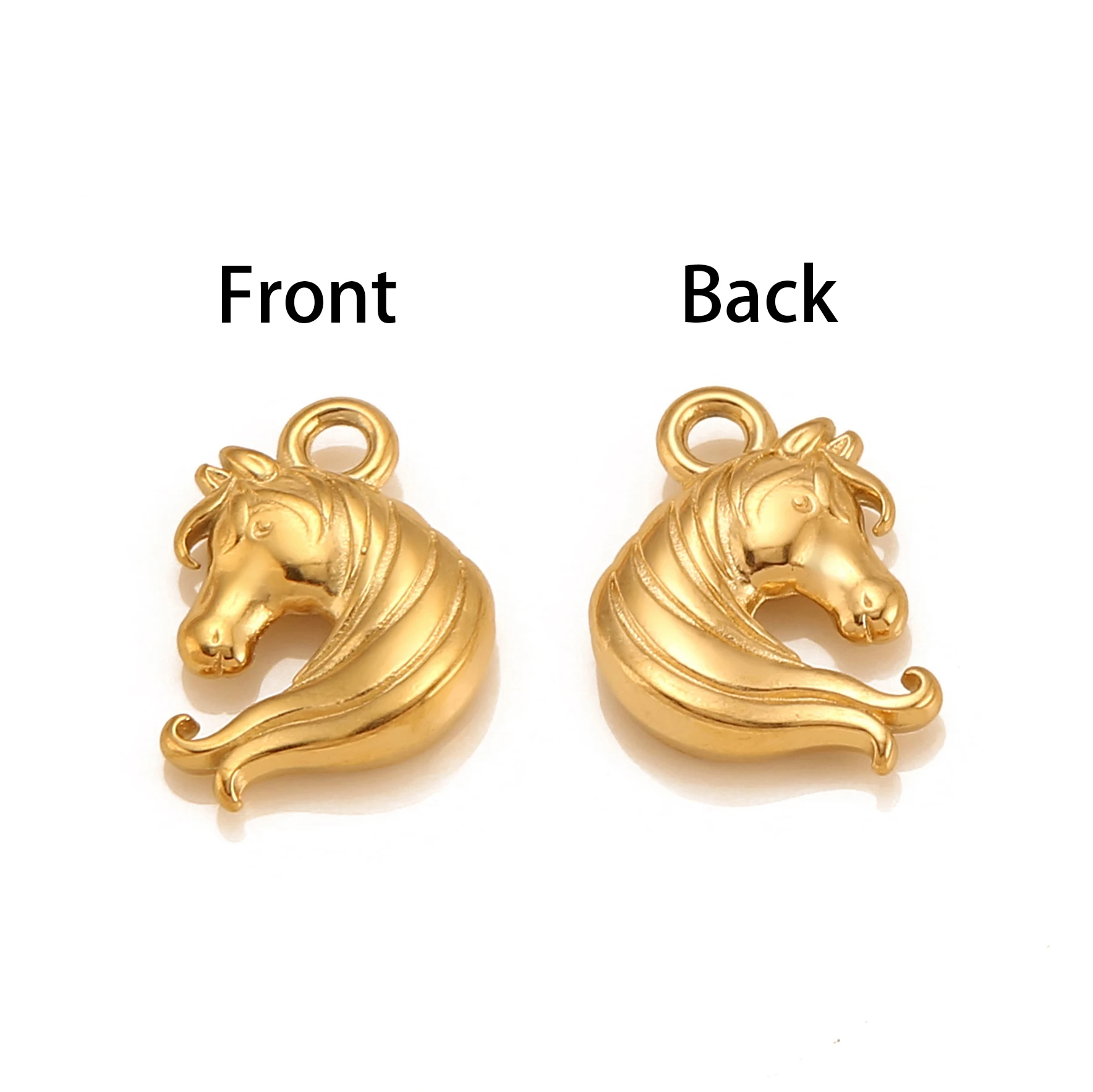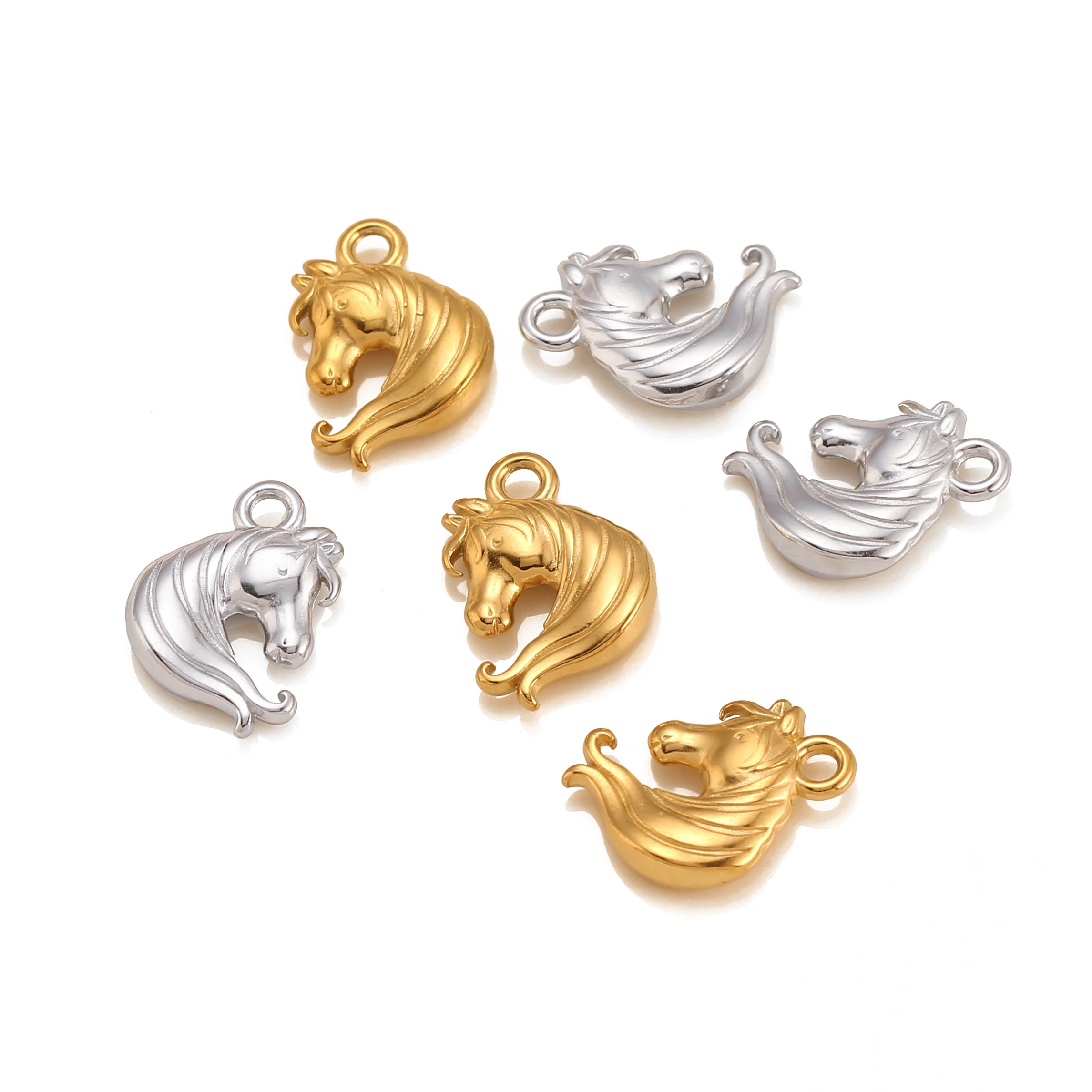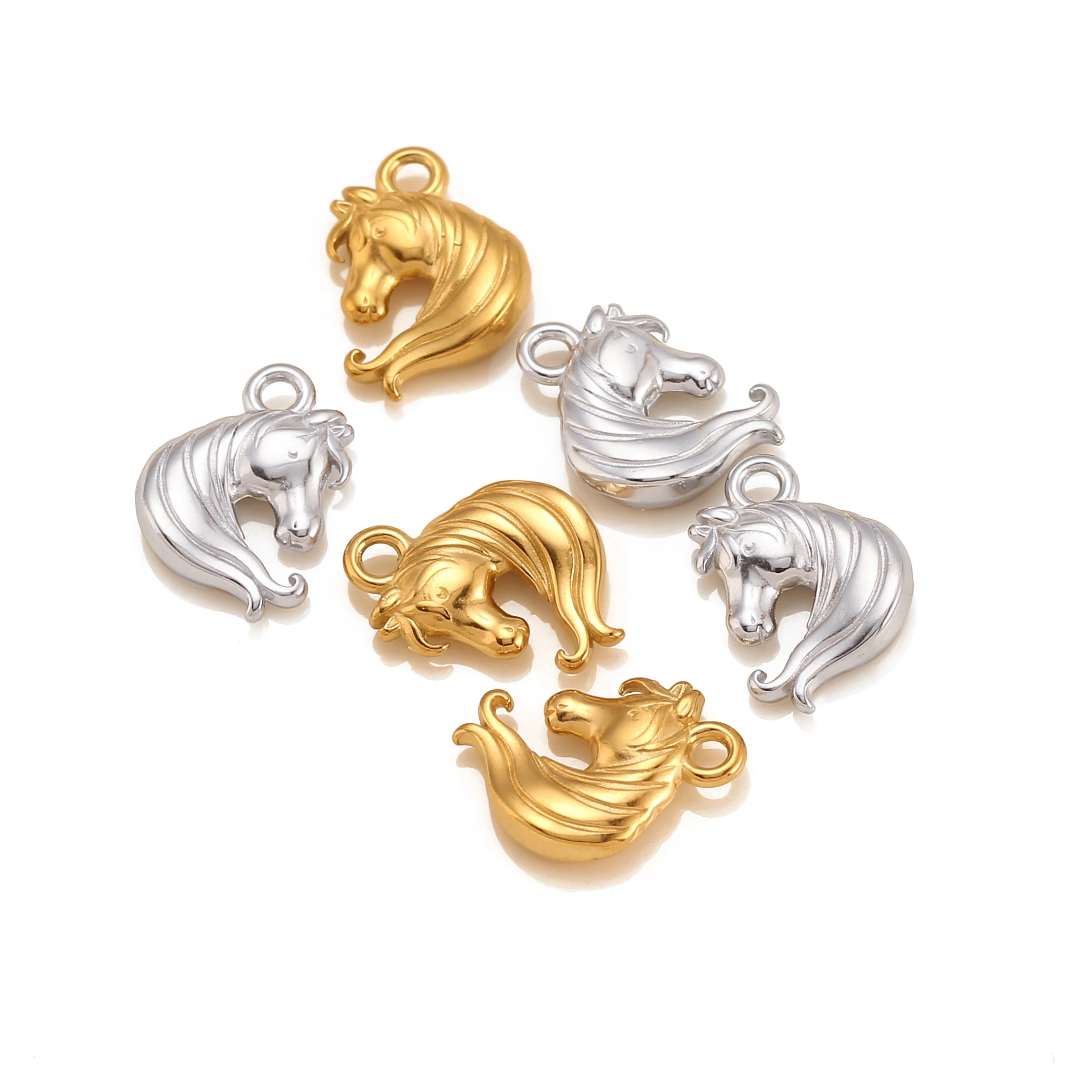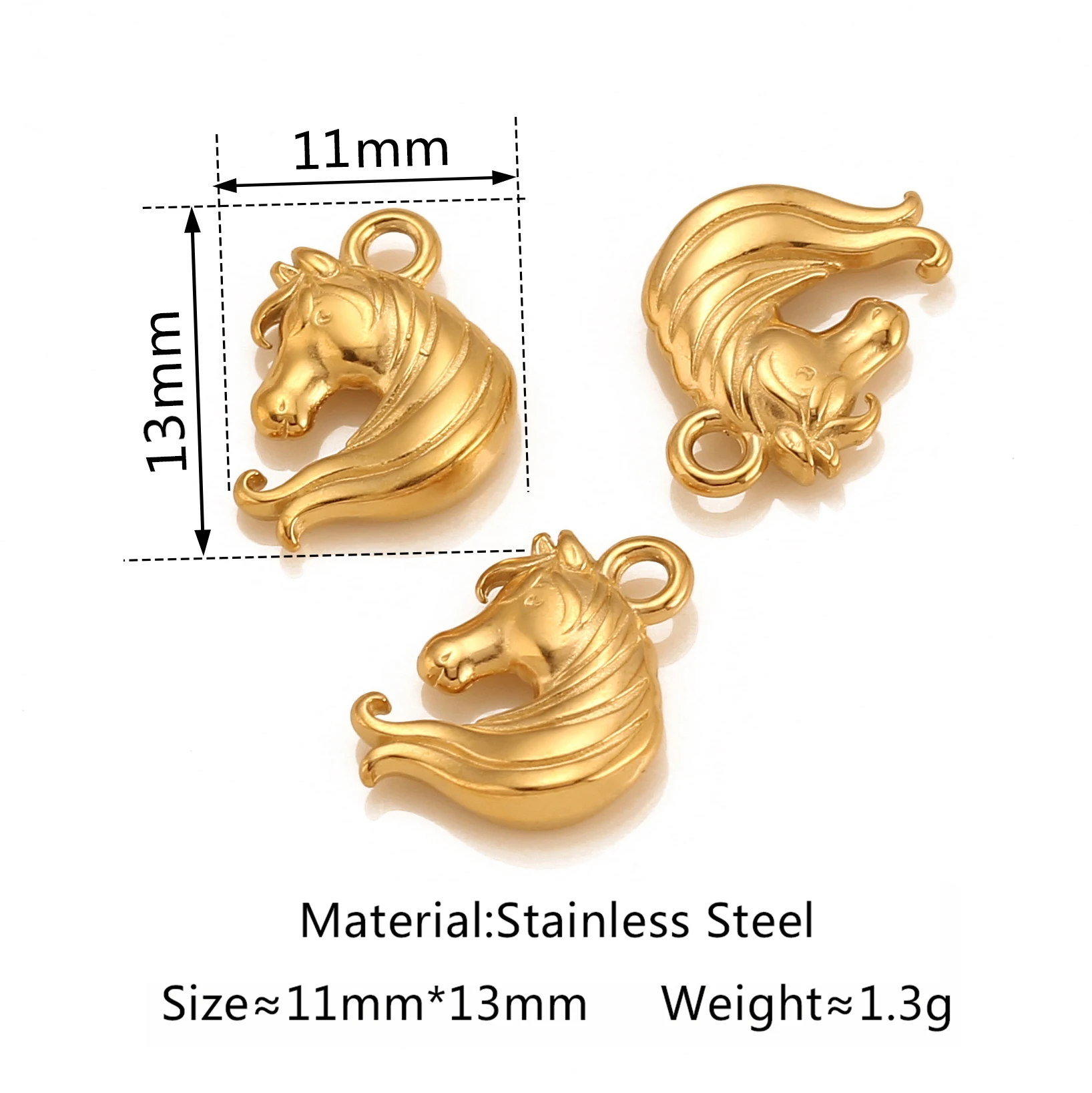 3pcs/Lot Cute Pony Pendant Stainless Steel Horse Head Gold Color Charm Accessories Diy Earring Bracelet Necklace Jewelry Making