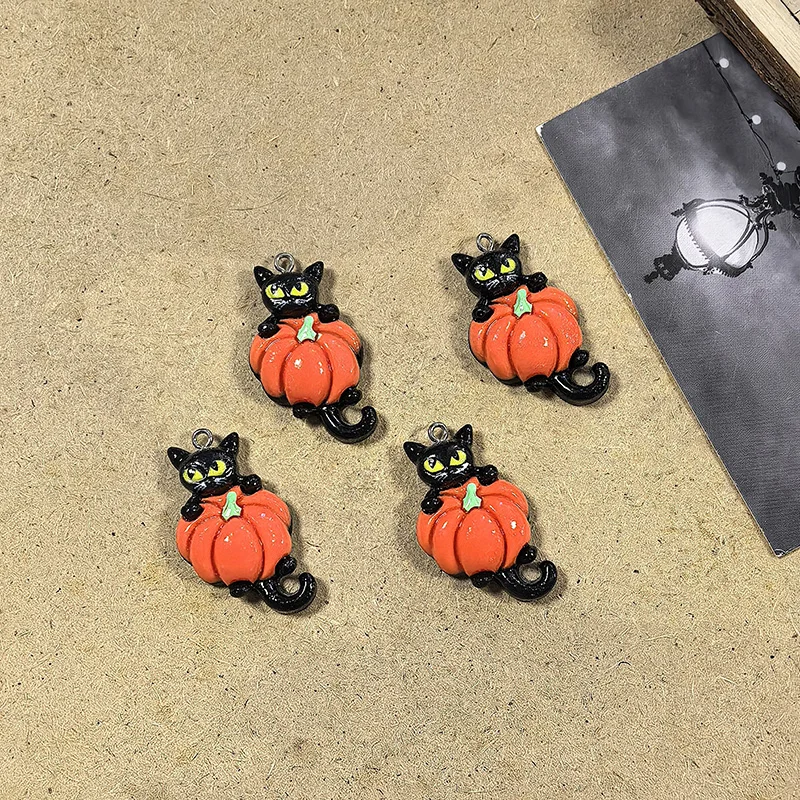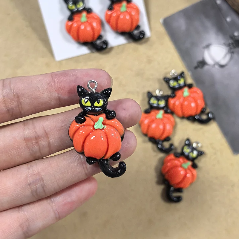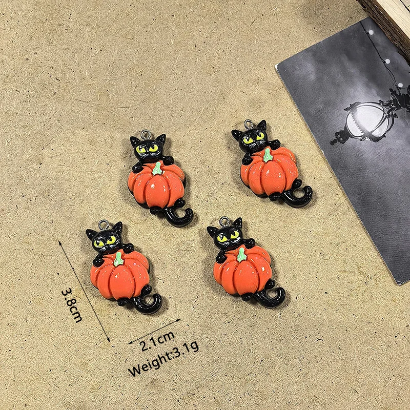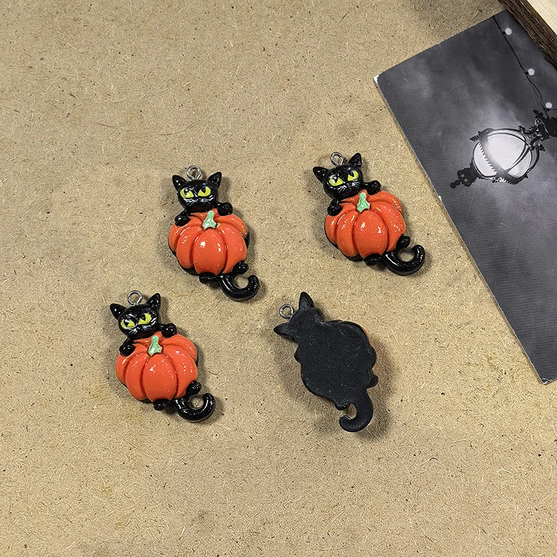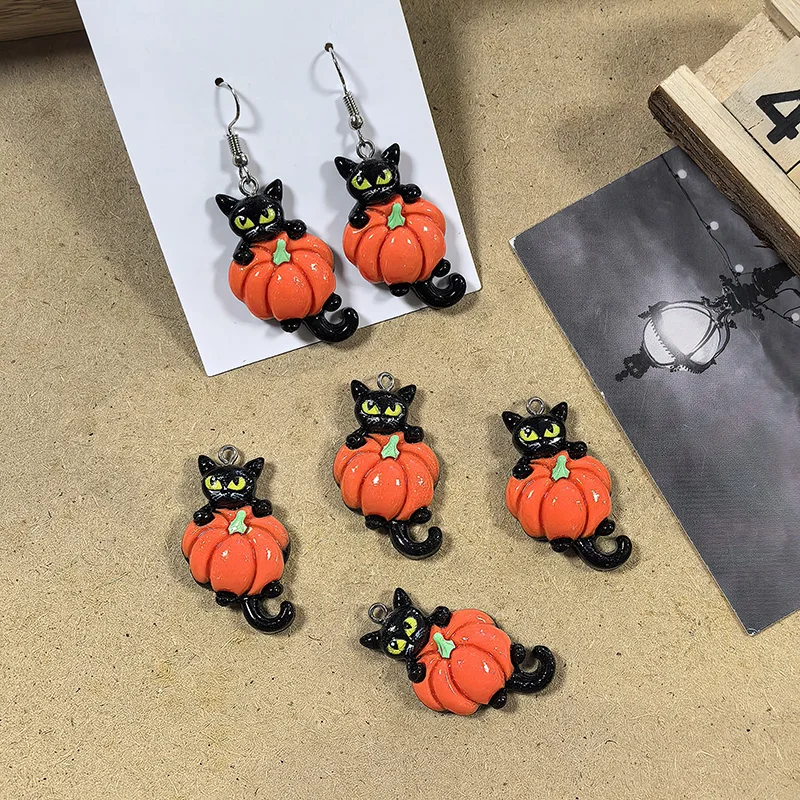 6pcs Cartoon Pumpkin Black Cat Hallowmas Earring Charms Resin Pendant DIY Festival Party Necklace Key Chains Jewelry Make