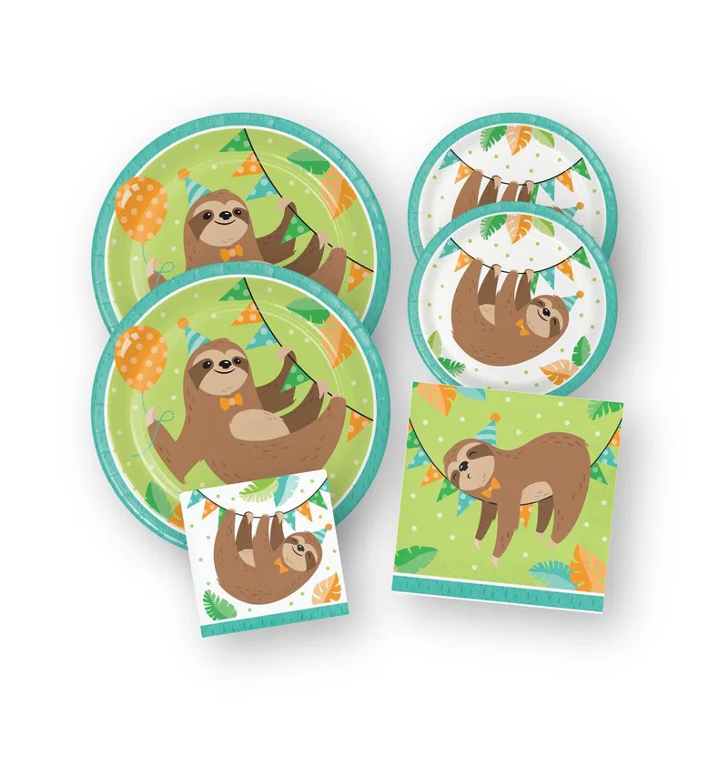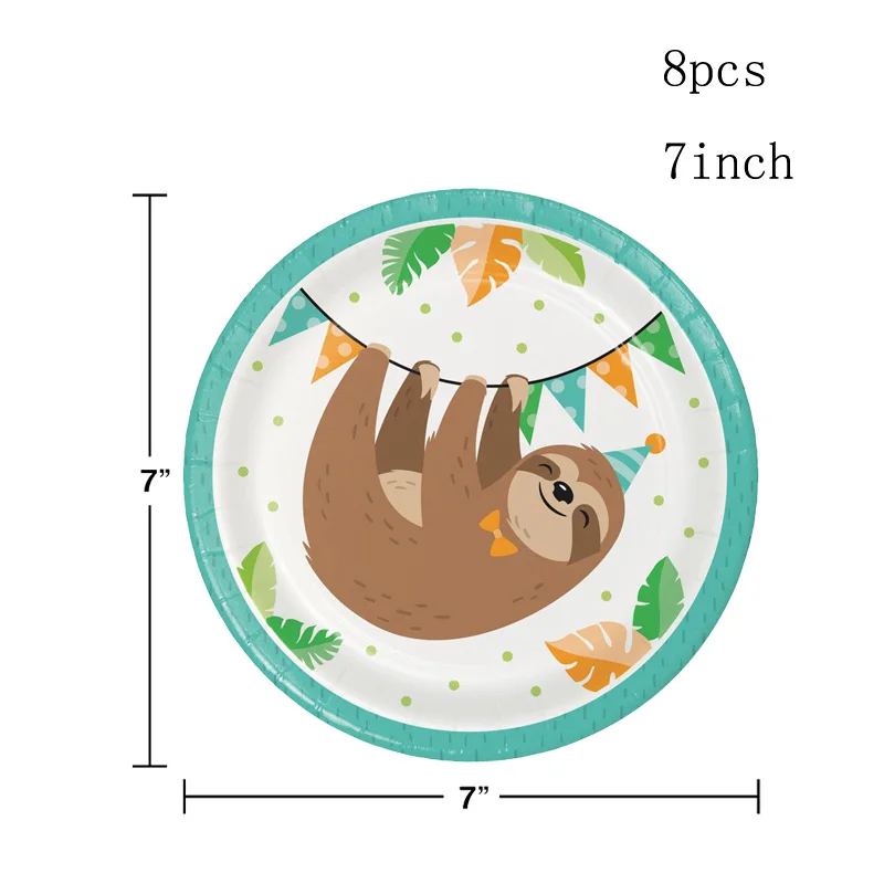 8pcs Cute Sloth Disposable tableware for kids birthday party supplies baby shower sloths print paper plate cup jungle party deco