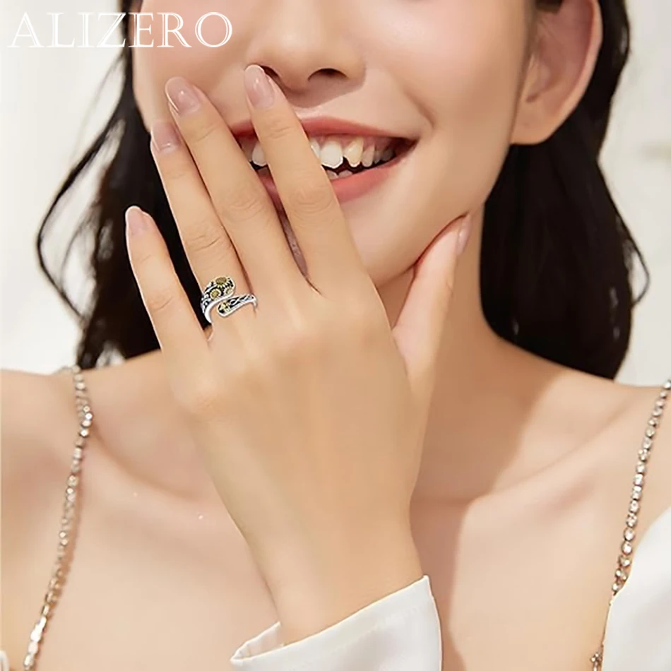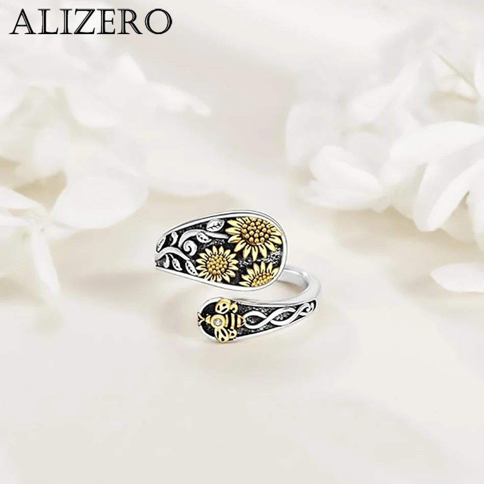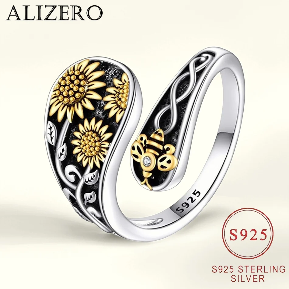 925 Sterling Silver Bee Sunflower Zircon Ring Unique Design Women's Bohemian Style Fashion Jewelry for Everyday Accessories