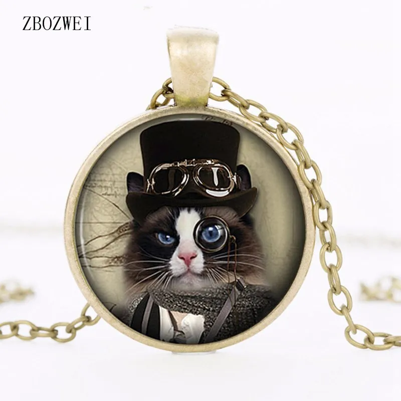 Alice in Wonderland Cheshire cat kitten steampunk necklace pendant handmade women's jewelry men's clothing accessories necklace