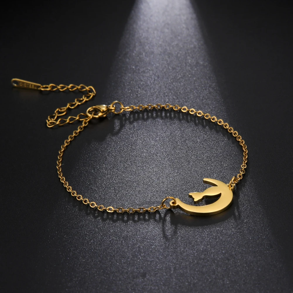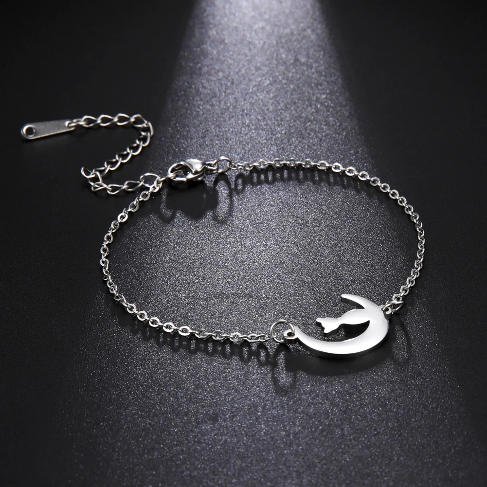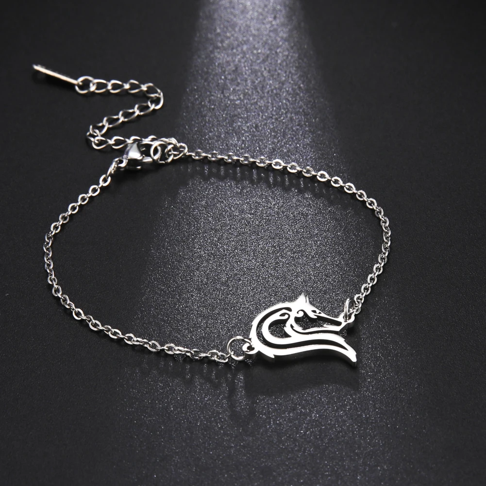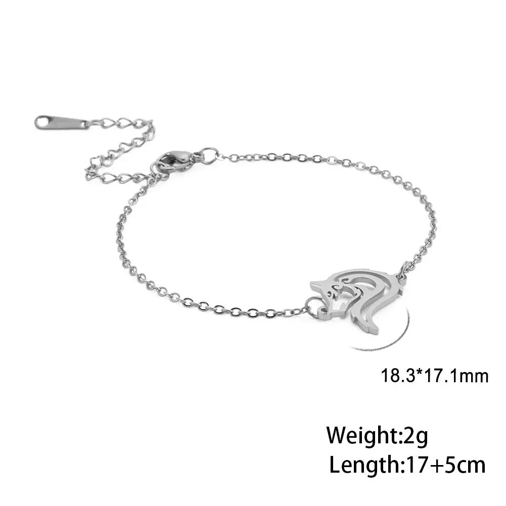 Amaxer Fox Animal Charm Bracelets for Girl Women Stainless Steel Cat Dolphin Hand Bracelet Jewelry Mother Day Birthday Gift