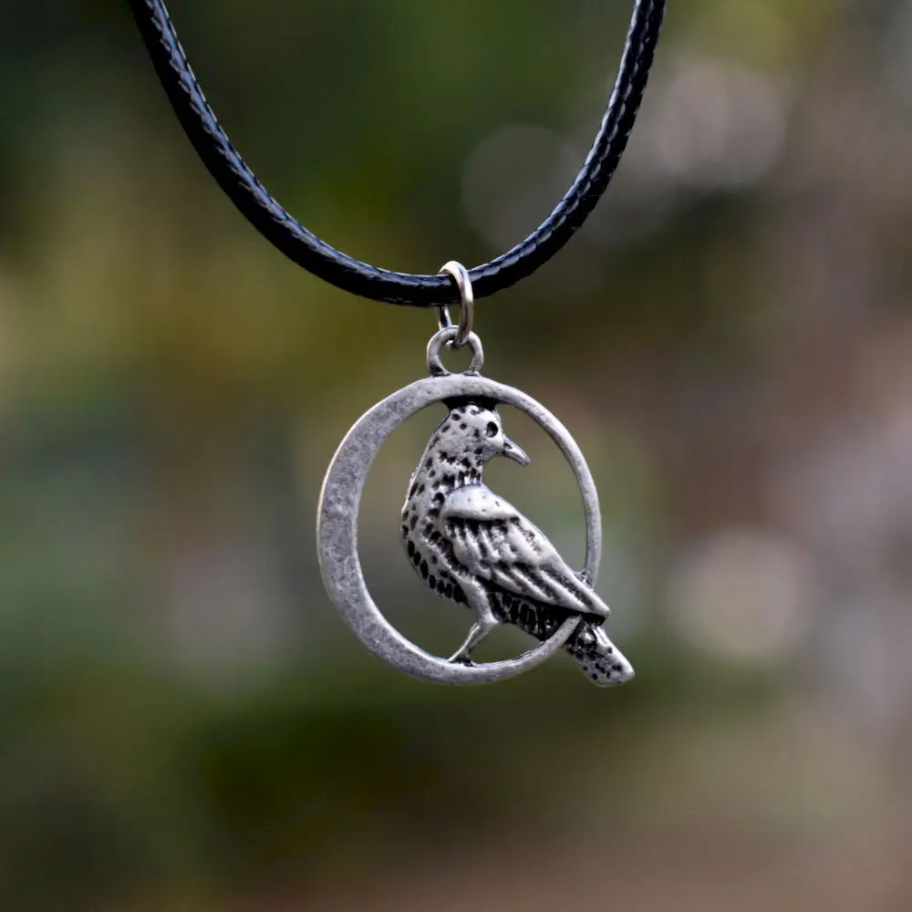 animal charm bird pendant crow raven necklace spirit totem