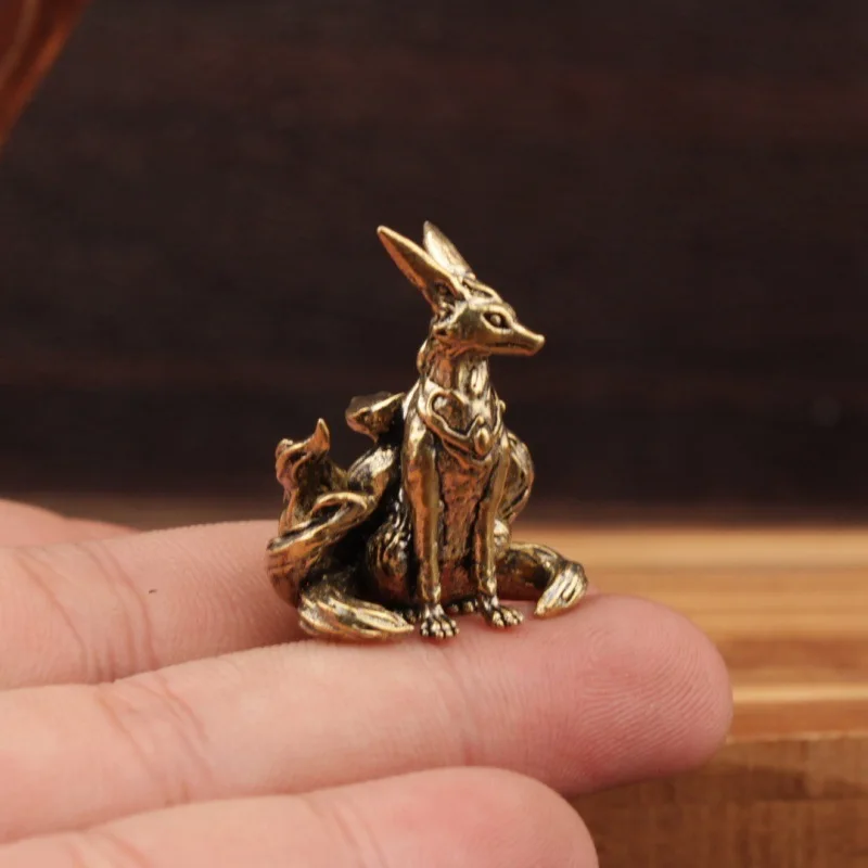 Brass Mythical Fox Statue Seven/Nine Tailed Fox Miniature Figurines Desk Ornament Mini Copper Animal Sculpture Home Decor Crafts
