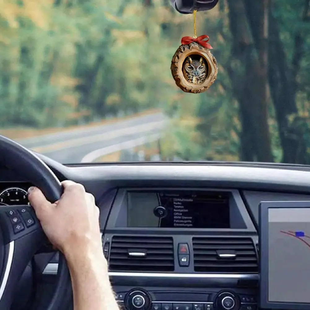 Christmas Cartoon Owl Hanging Pendants Ornament 2D Acrylic Christmas Tree Forest Animal Pendants Home Christmas Ornaments