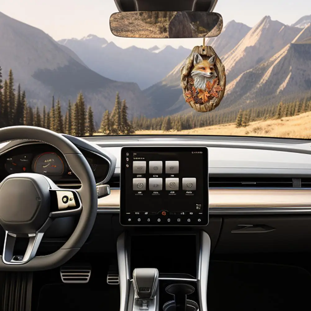 Fox Christmas Ornament 2D Acrylic Forest Animal Hanging Decoration Fox in Tree Hole Holiday Ornament for Xmas Tree Animal Lovers Gift