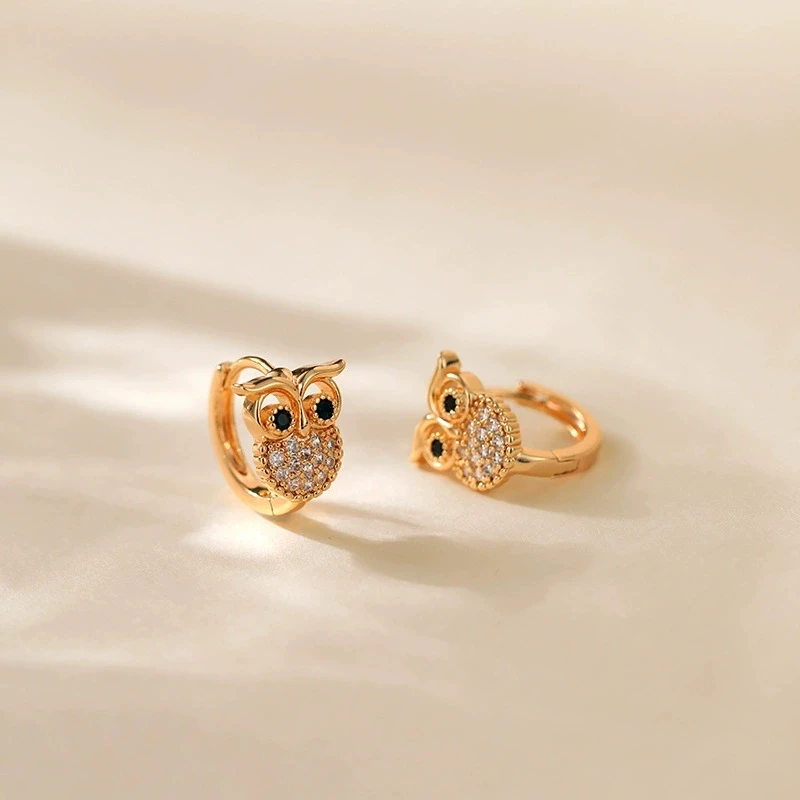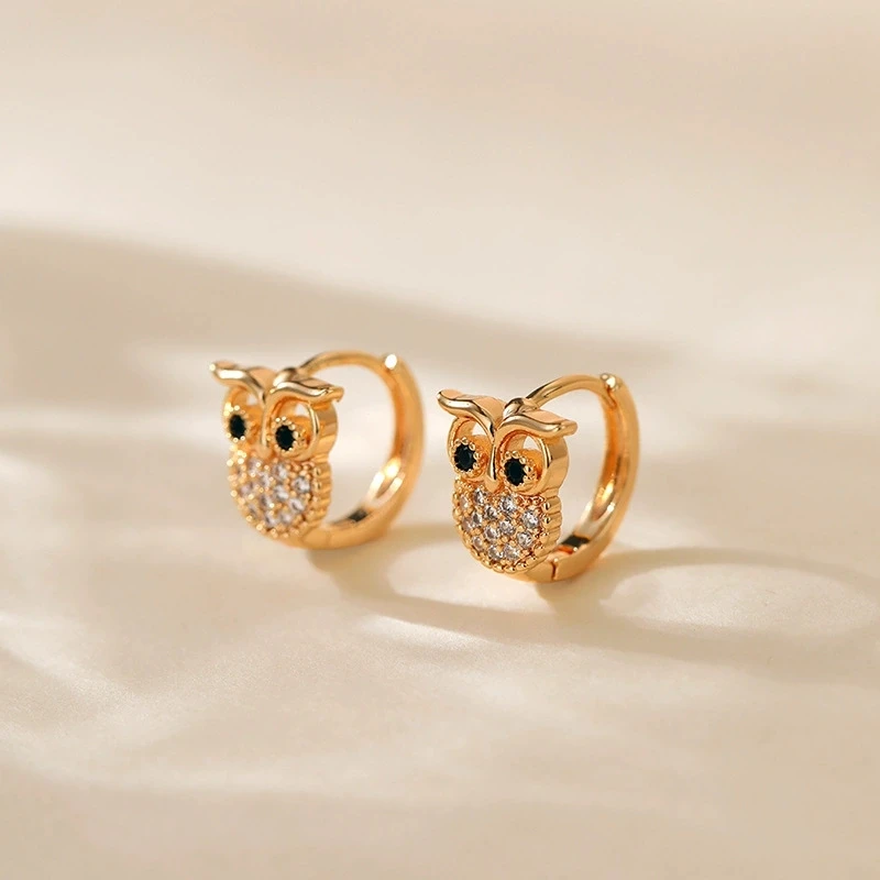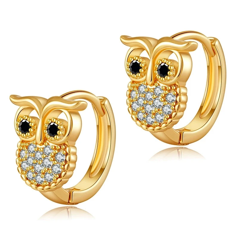 Cute Animal Owl Hoop Earrings For Women Gold Color White Zircon Female Smal Ear Buckle Wedding Party Jewelry