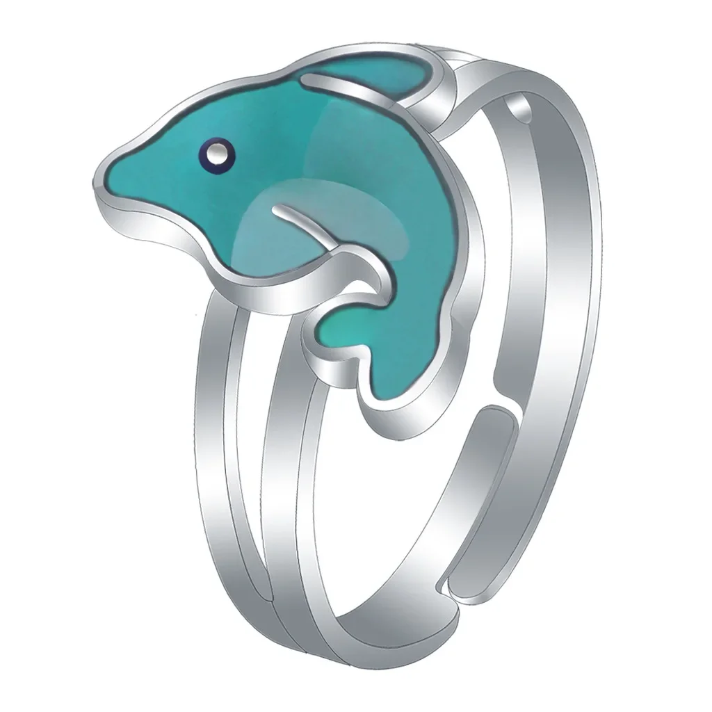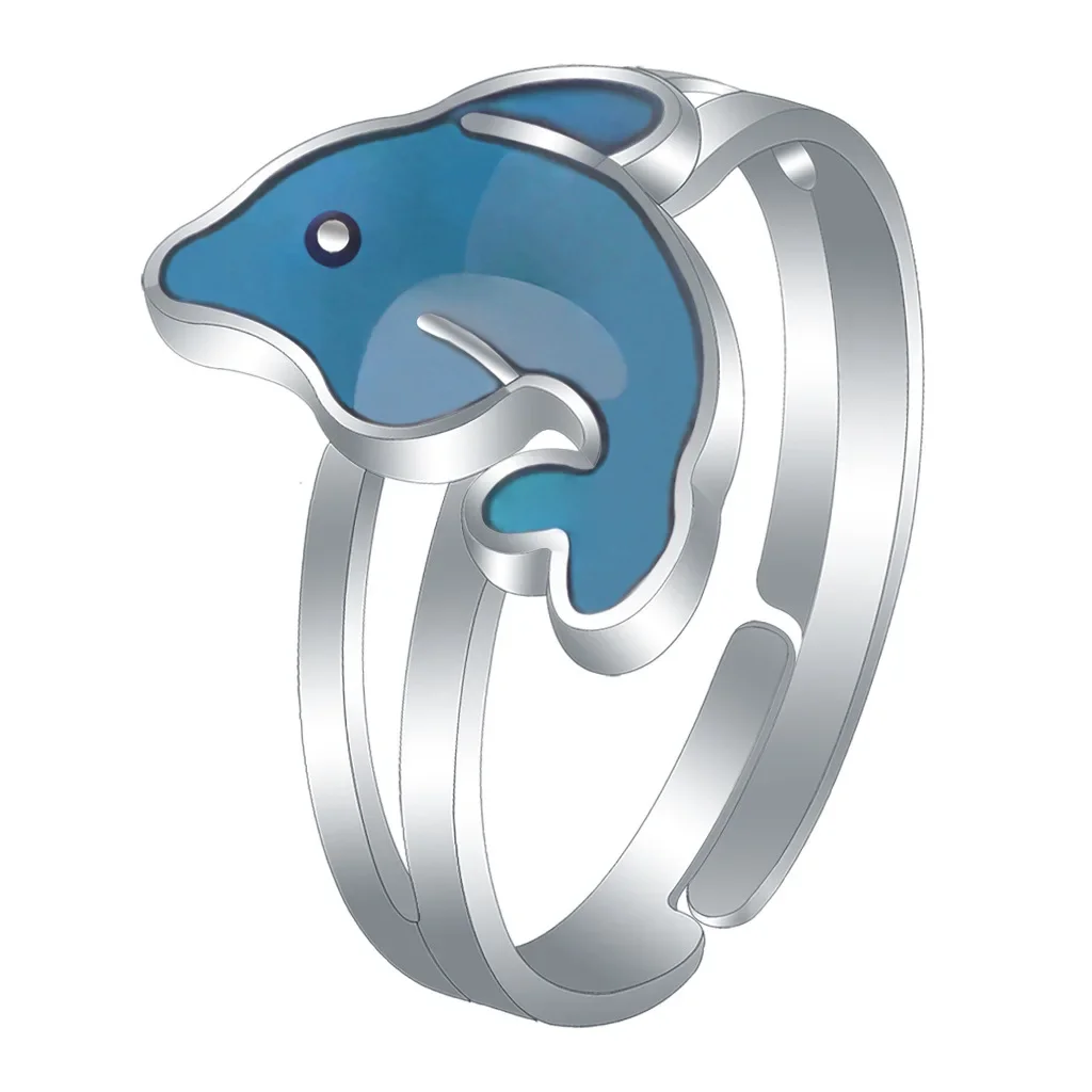 Cute Cartoon Dolphin Mood Rings – Adjustable, Temperature & Emotion-Sensing Color-Changing Jewelry