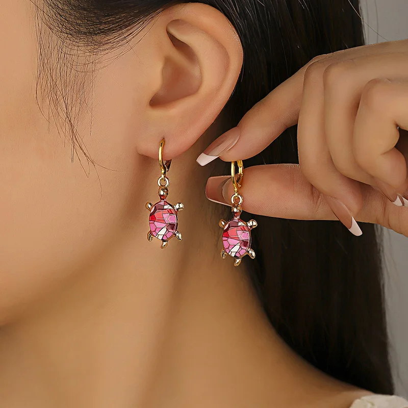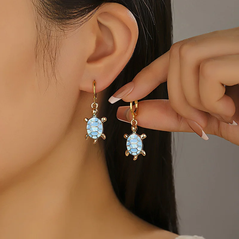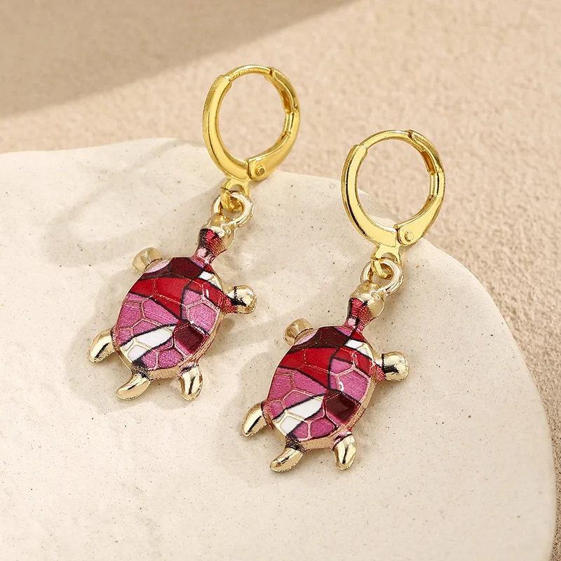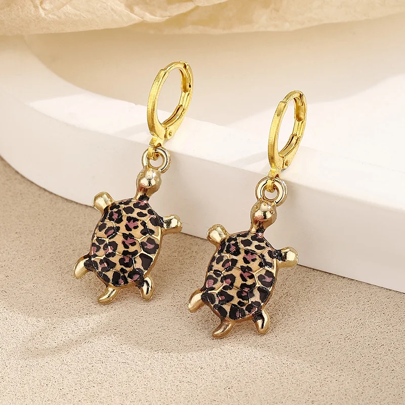 Cute Enamel Leopard Print Red Blue Sea Turtle Huggie Earrings For Women Summer Beach Ocean Jewelry