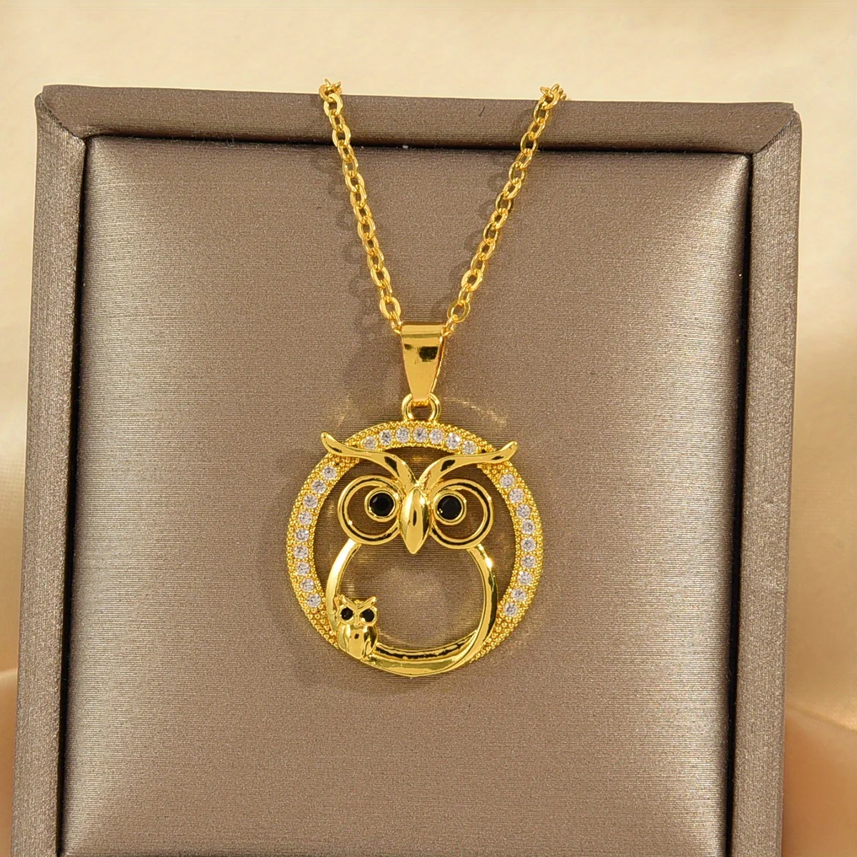 Cute Hollow Parent-child Owl Round Pendant Necklace for Women, Fashionable and Romantic Jewelry Gift, Suitable for All Occasions