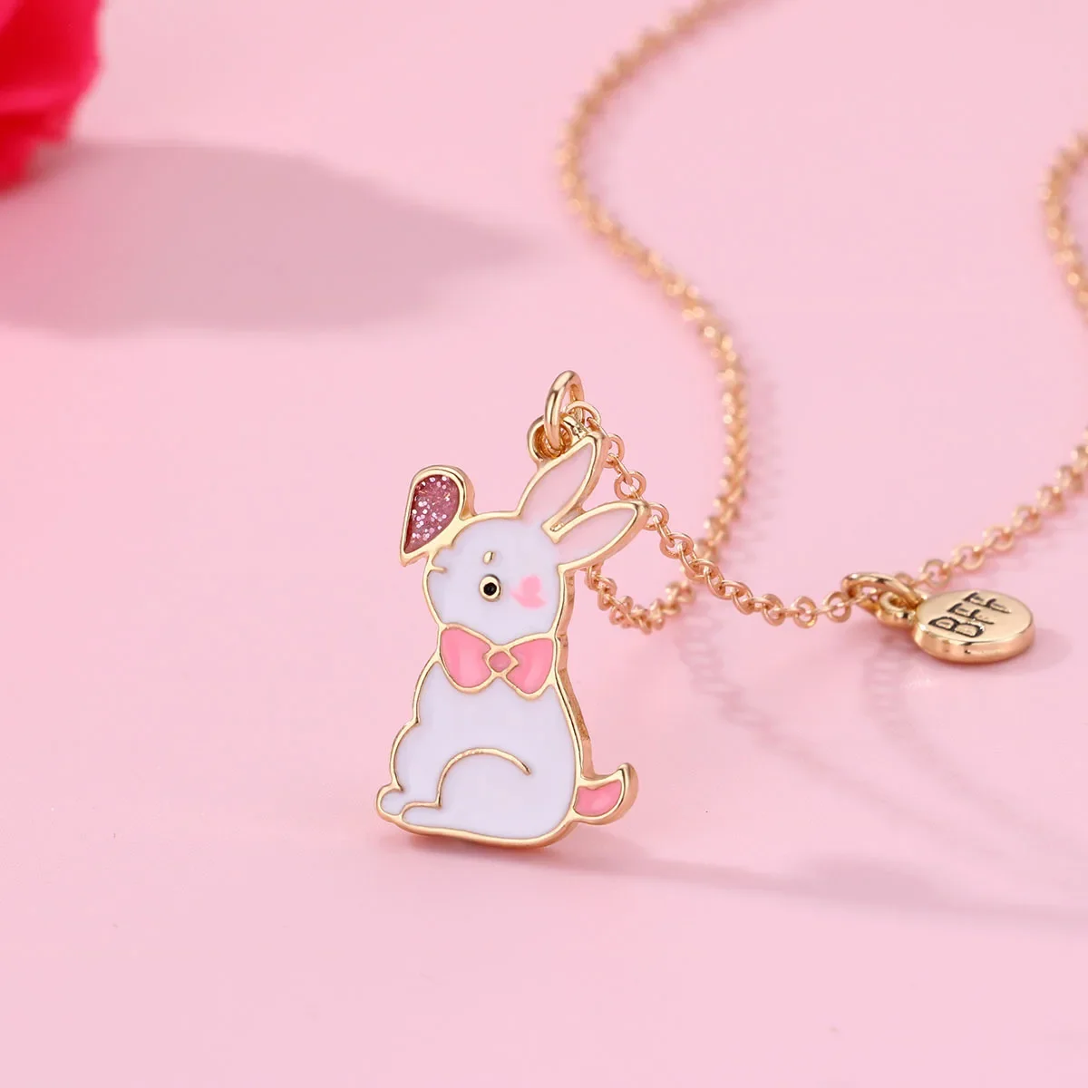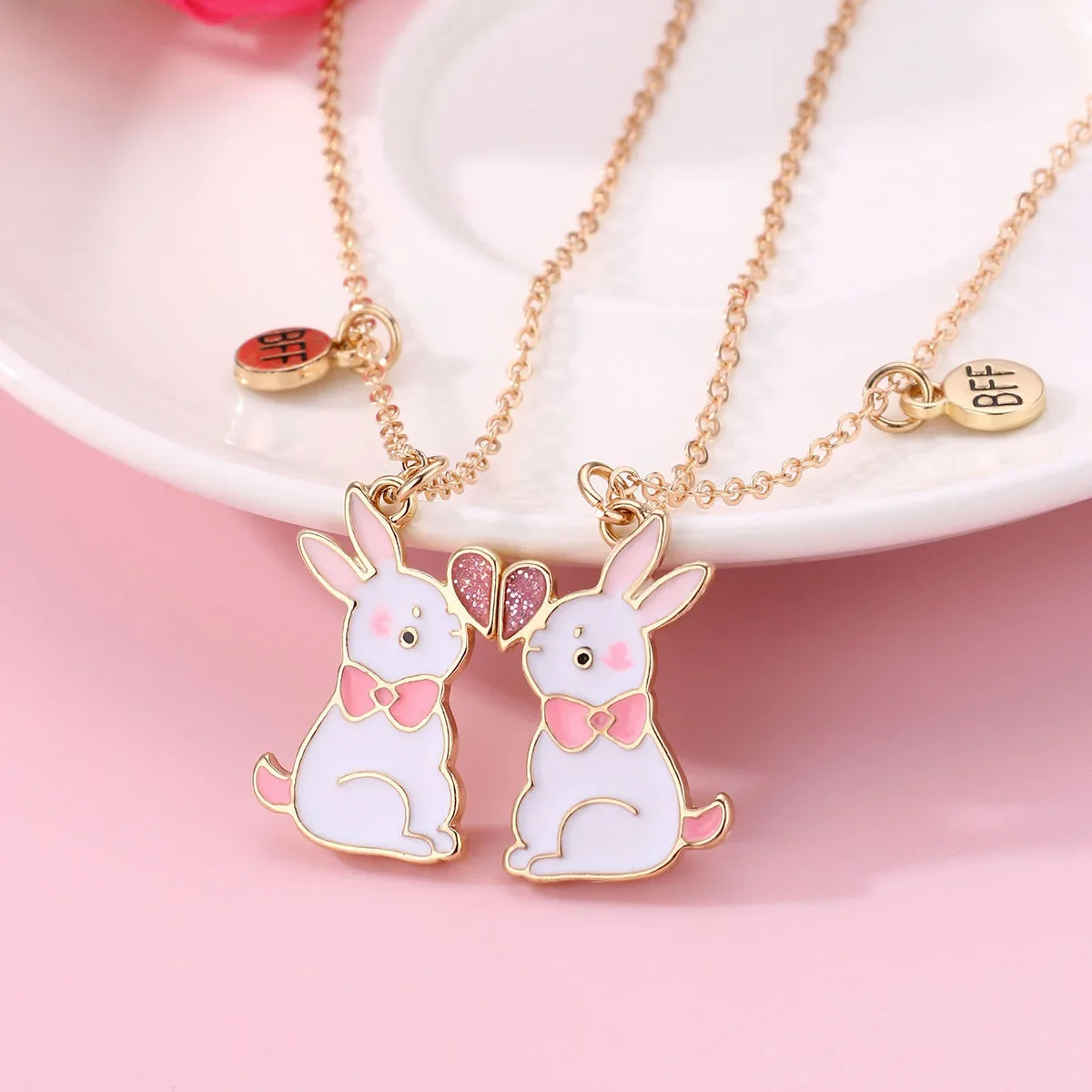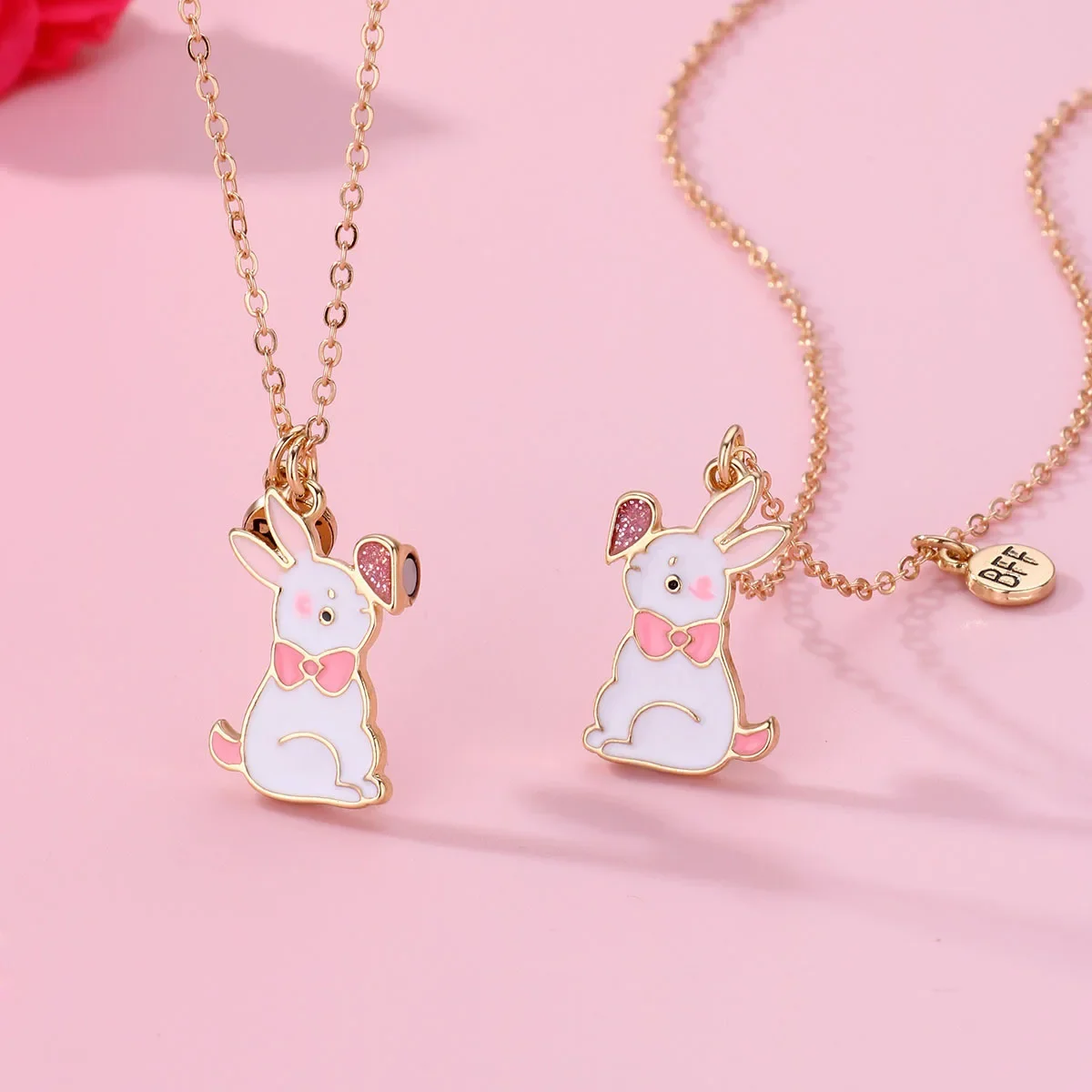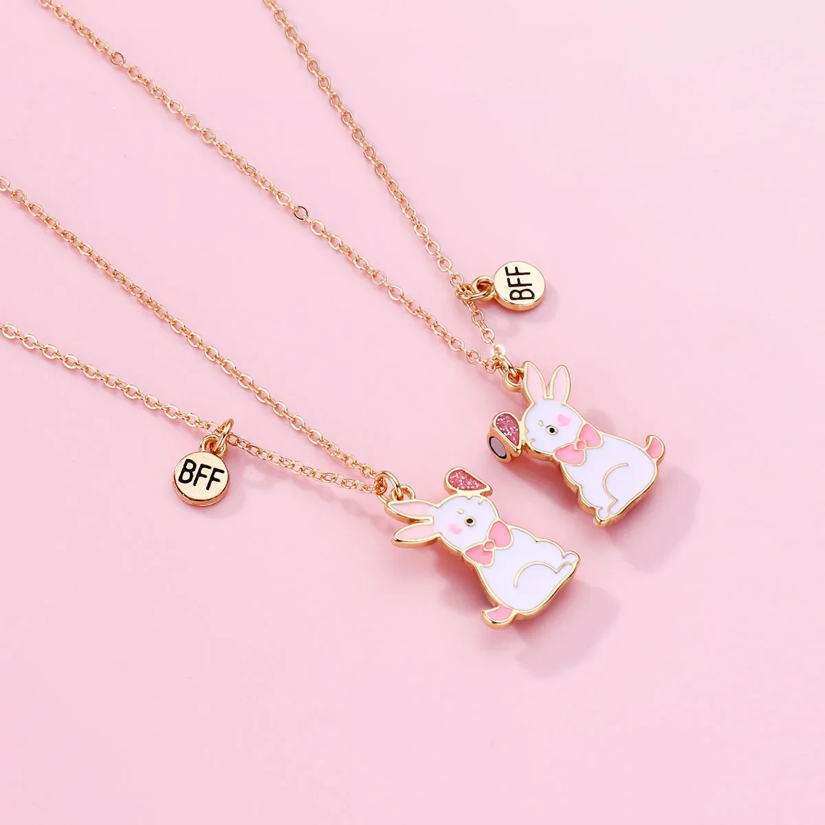 Cute Rabbits Charm Magnetic Necklace for Men Women Girls Fashion Cartoon Friendship Bunny Pendant Splicing Necklace Party Gifts