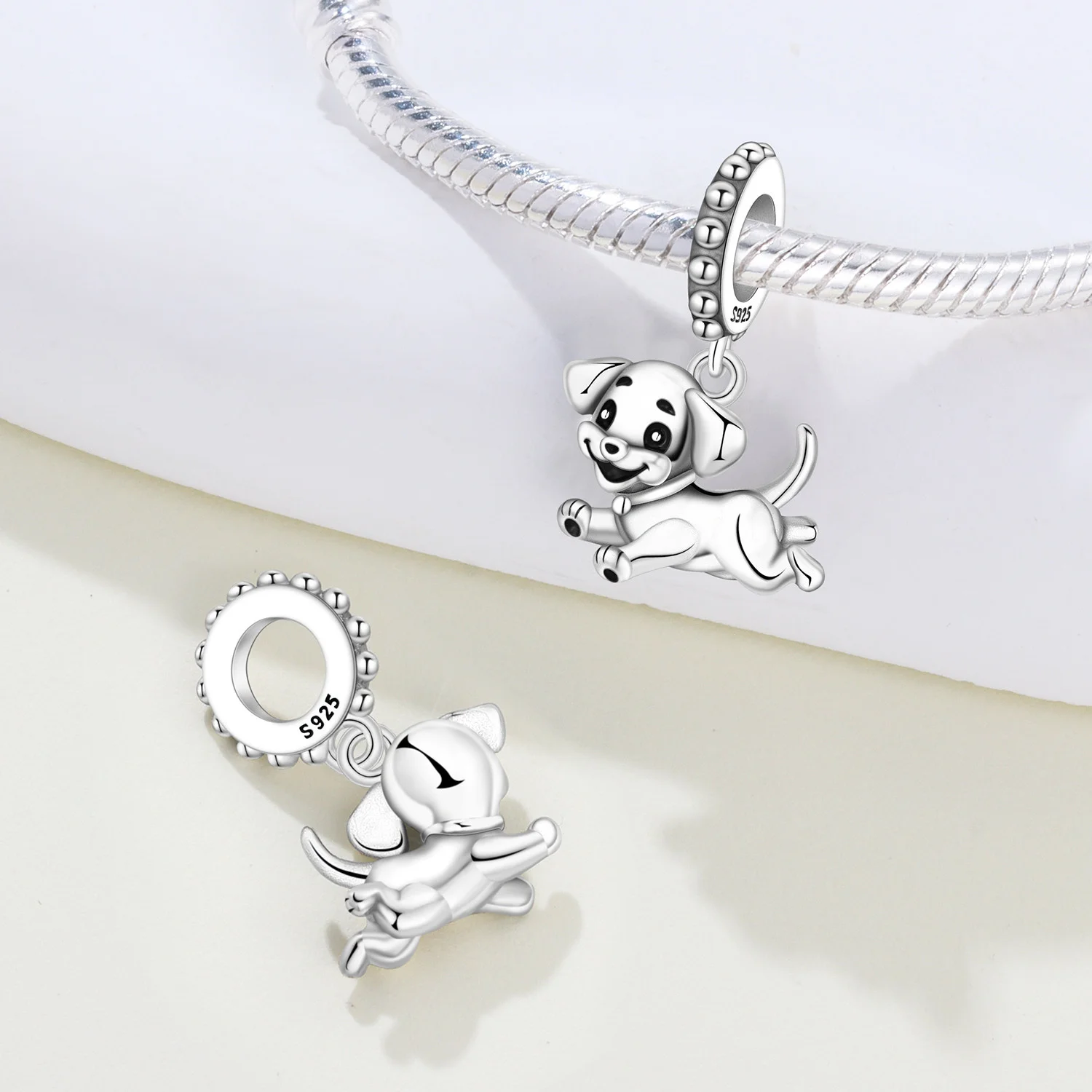CYCUFF 2025 New 925 Sterling Silver Happy Running Puppy Pendant Charms for Women Fit Original DIY Bracelet Necklace Jewelry Gift