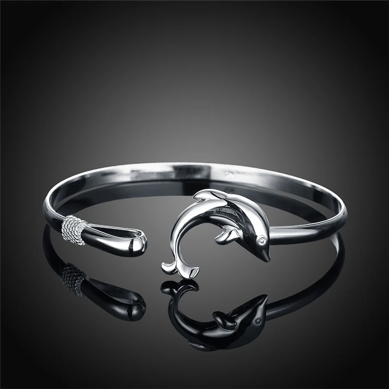 DOTEFFIL 925 Sterling Silver Dolphin Bangle Bracelet For Women Wedding Engagement Fashion Charm Party Jewelry