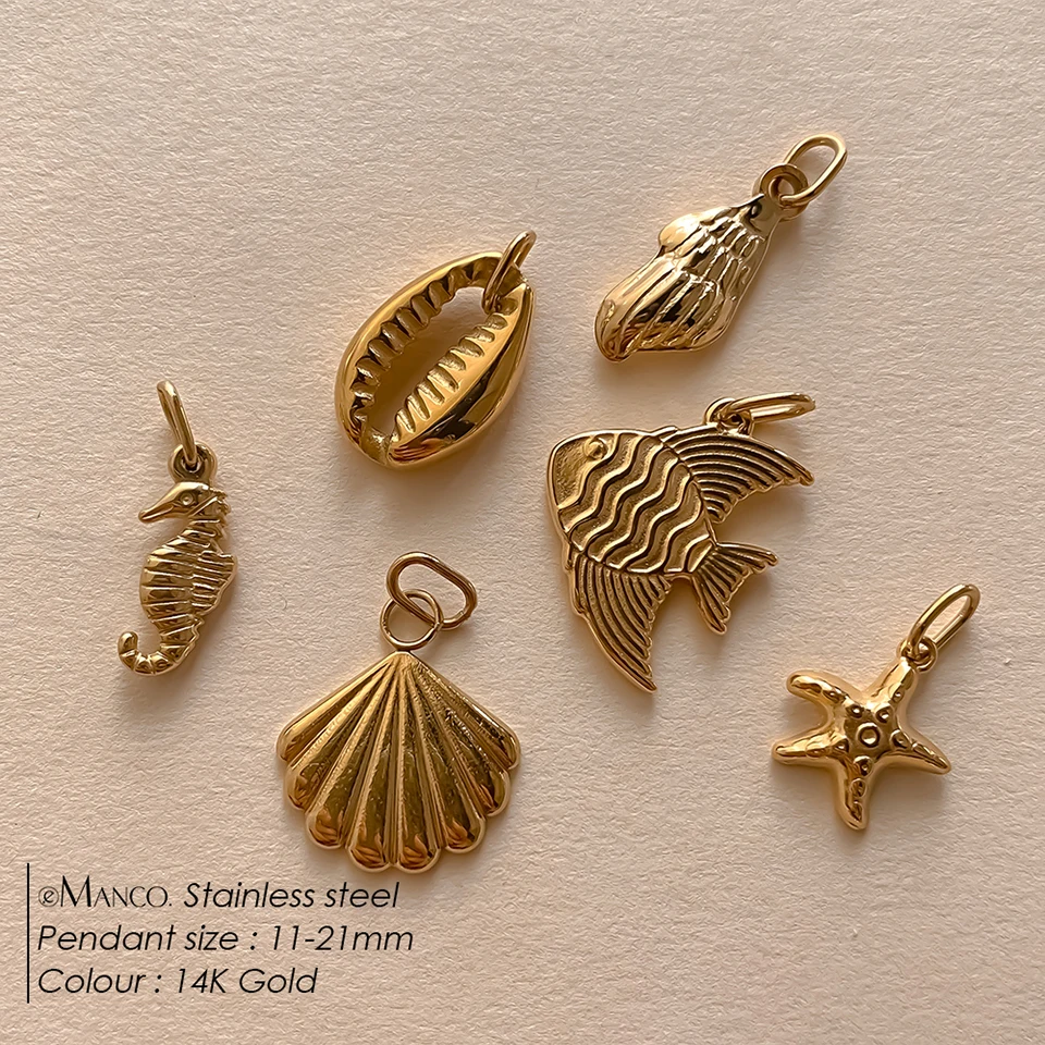 eManco Fashion Marine Animals Charms Shell Fish Tail Hippocampus Japonicus Stainless Steel Pendants Handmade Jewelry Making