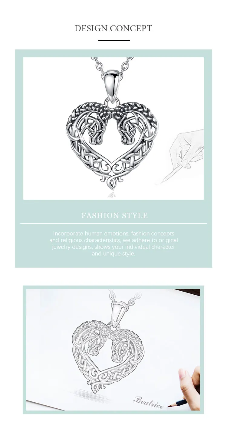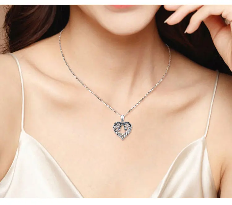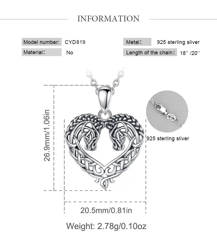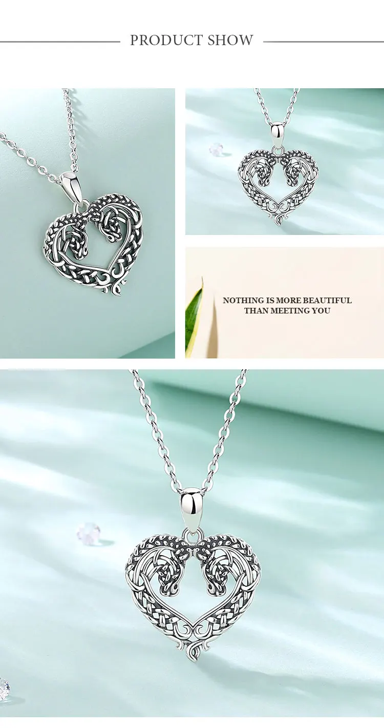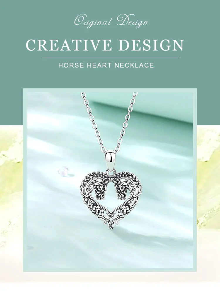 Eudora 925 Sterling Silver Horse Necklace Heart Shape Celtic Knot Pendant Exquisite Fashion Jewelry Women Gifts For Friends