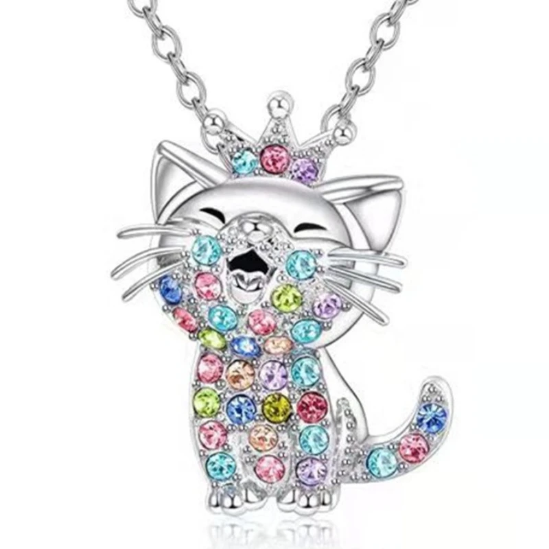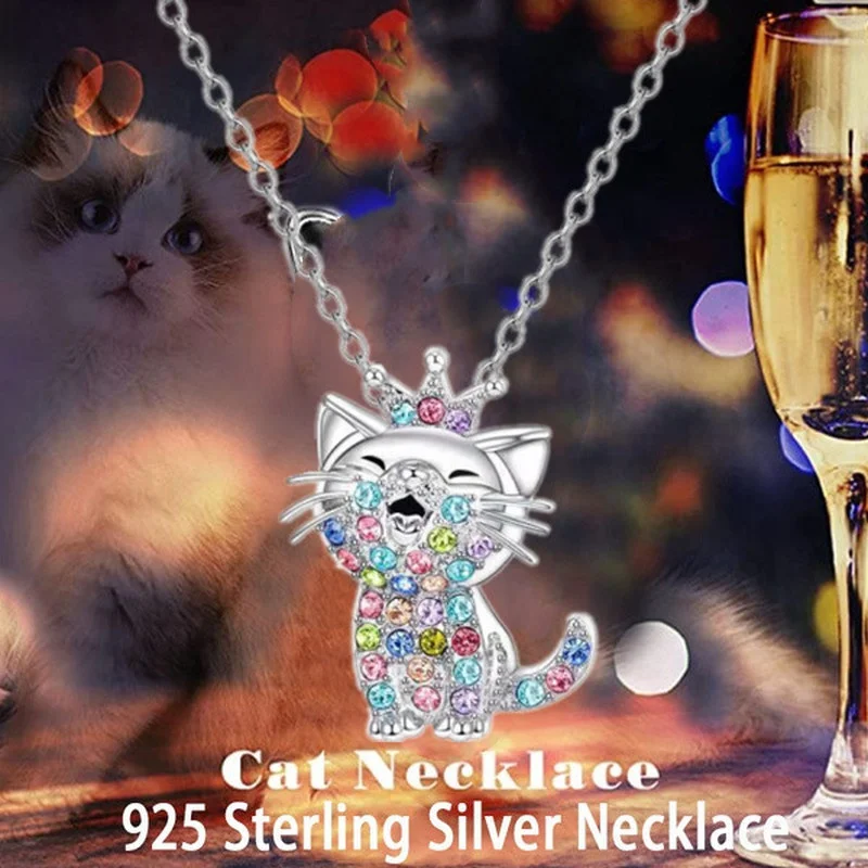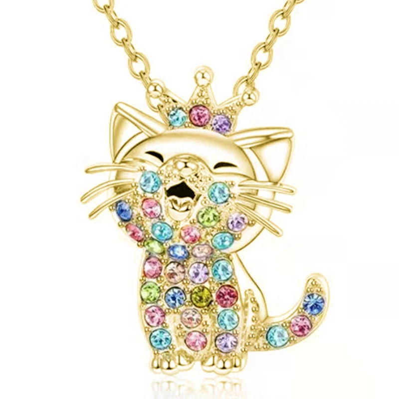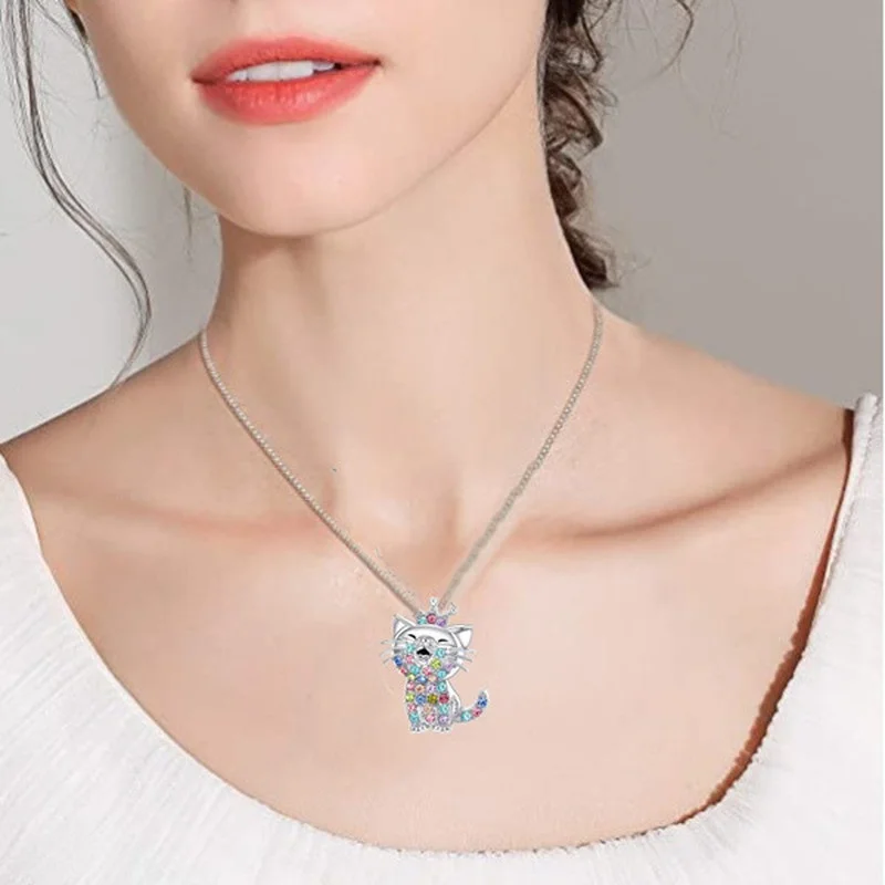 Exquisite Fashion Cat Necklace Lovely Colorful Animal Cat Pendant Necklace for Women Wedding Jewelry Birthday Anniversary Gift